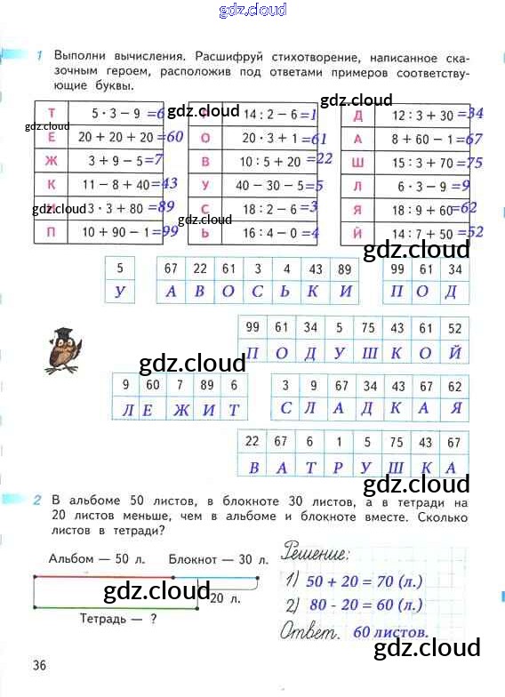 Ответ на задание 36 Рабочая тетрадь Математика за 2 (второй) класс Дорофеев, Миракова, Бука Перспектива 2015 Часть 1, 2