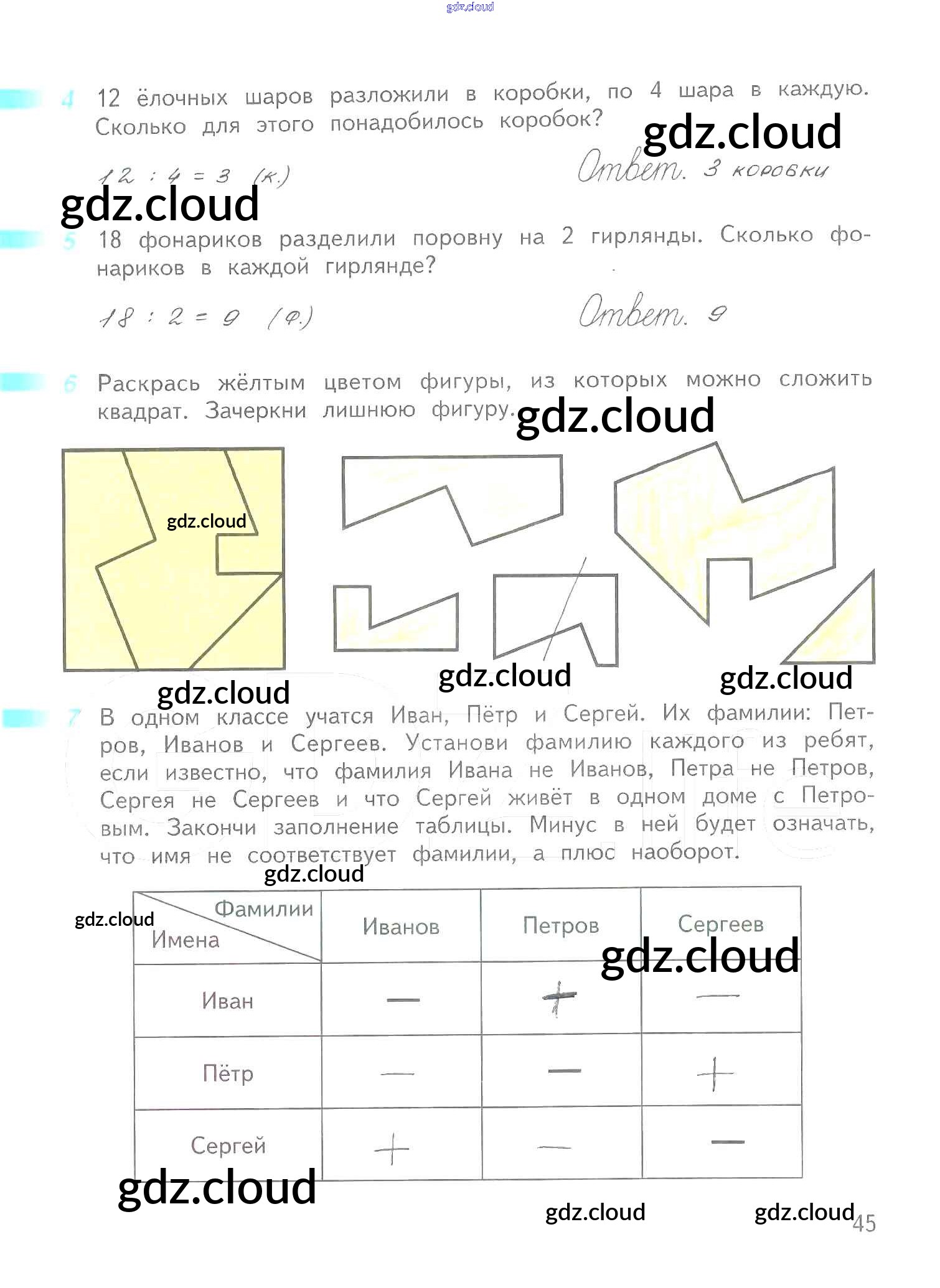 Ответ на задание 45 Рабочая тетрадь Математика за 2 (второй) класс Дорофеев, Миракова, Бука Перспектива 2015 Часть 1, 2