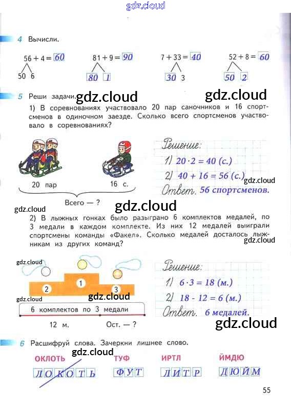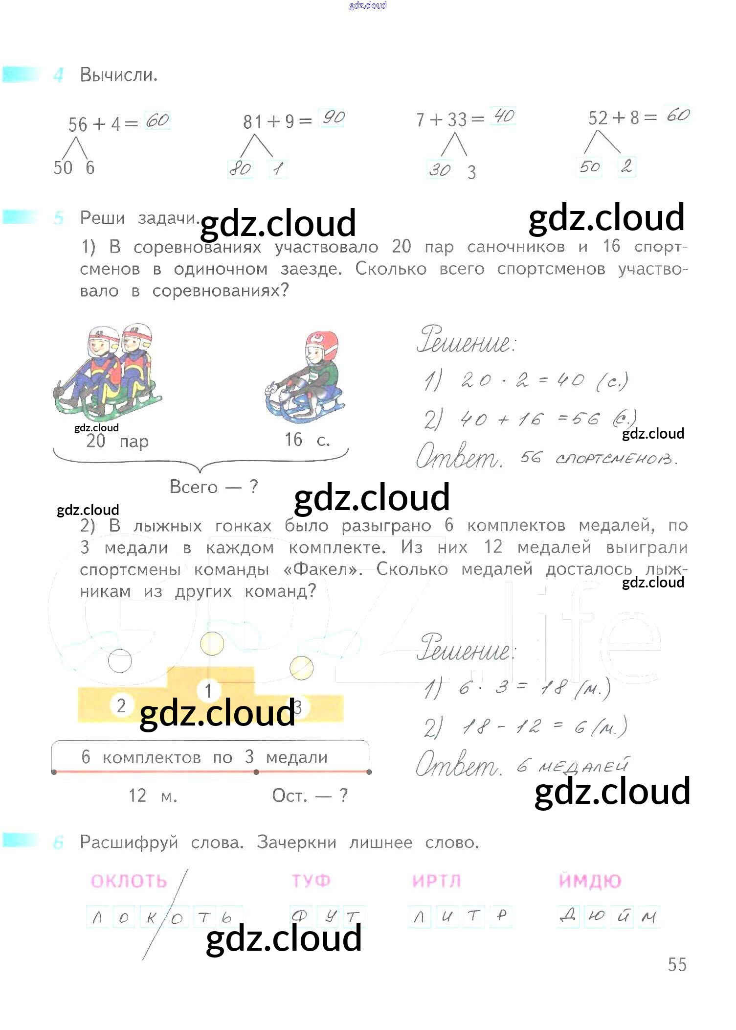 Ответ на задание 55 Рабочая тетрадь Математика за 2 (второй) класс Дорофеев, Миракова, Бука Перспектива 2015 Часть 1, 2