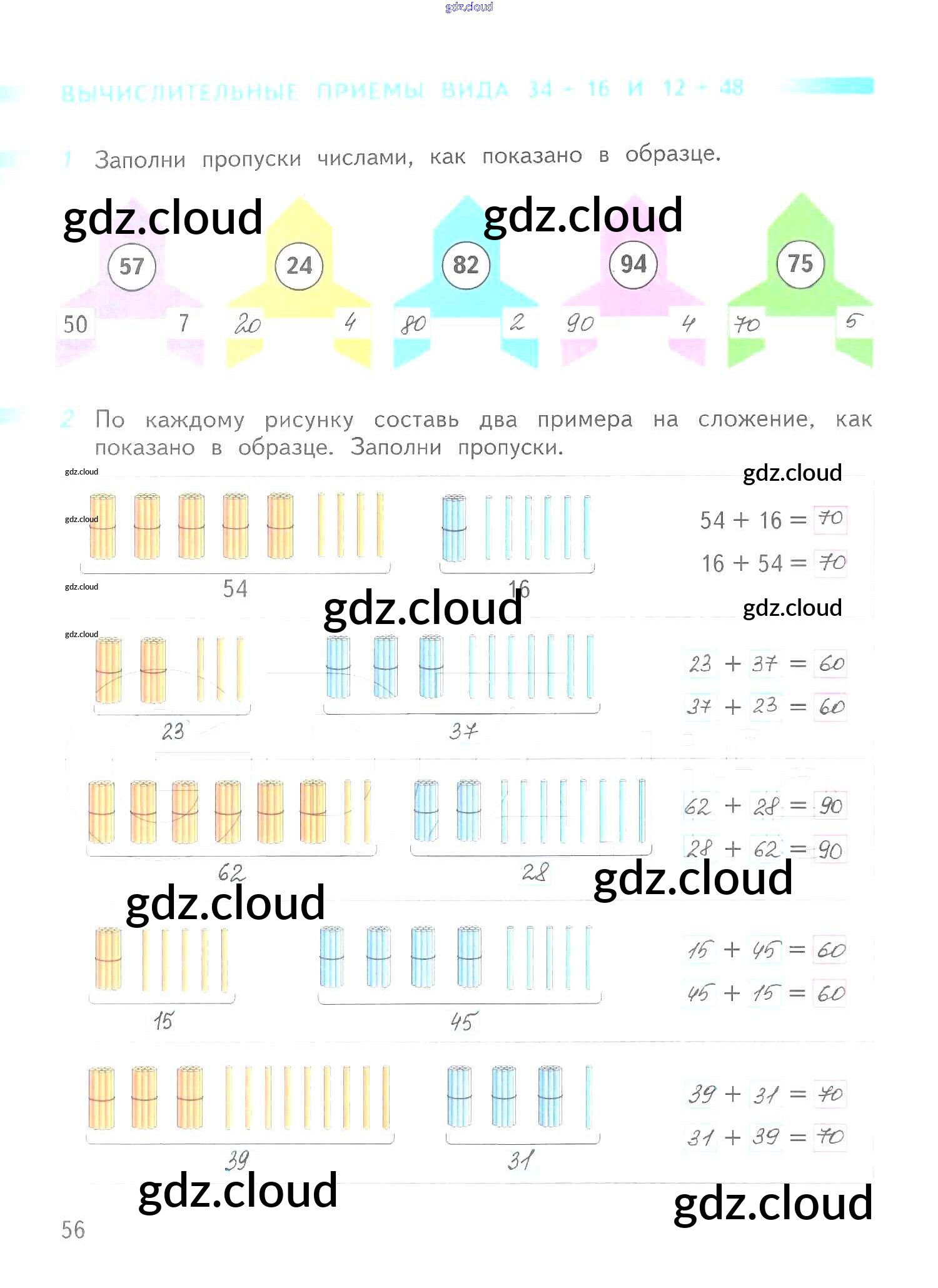 Ответ на задание 56 Рабочая тетрадь Математика за 2 (второй) класс Дорофеев, Миракова, Бука Перспектива 2015 Часть 1, 2