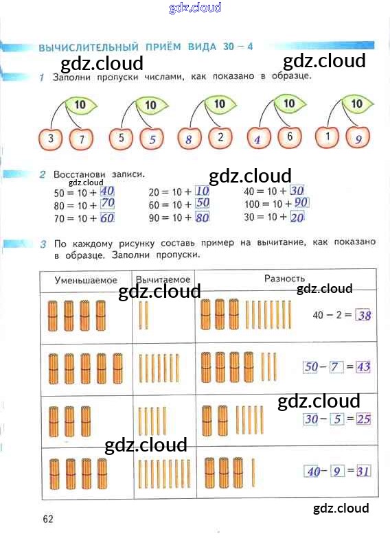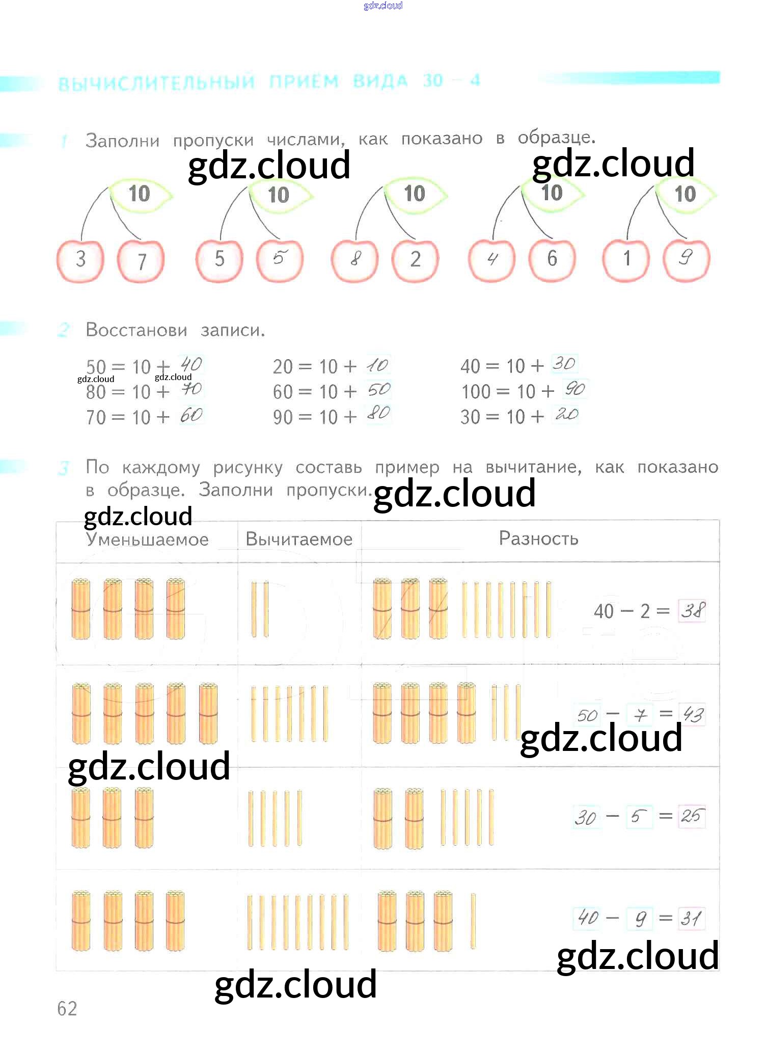 Ответ на задание 62 Рабочая тетрадь Математика за 2 (второй) класс Дорофеев, Миракова, Бука Перспектива 2015 Часть 1, 2