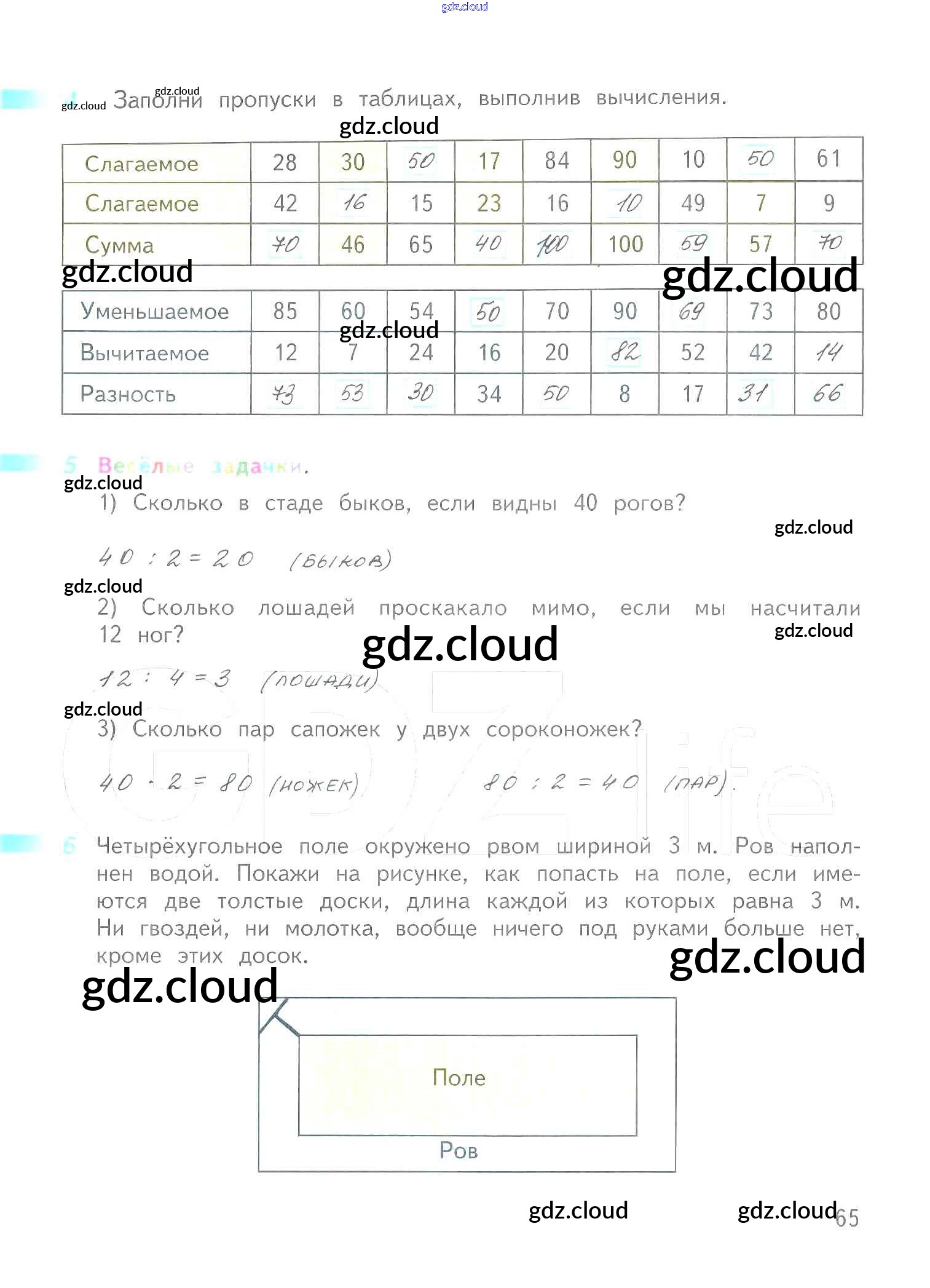 Ответ на задание 65 Рабочая тетрадь Математика за 2 (второй) класс Дорофеев, Миракова, Бука Перспектива 2015 Часть 1, 2