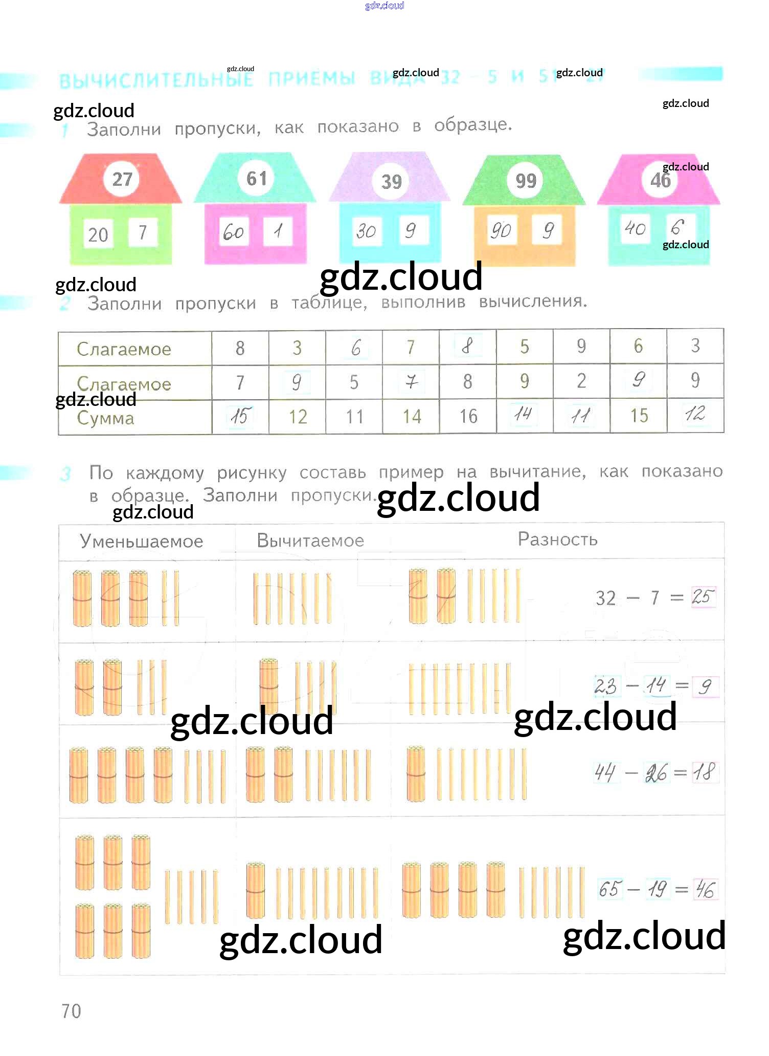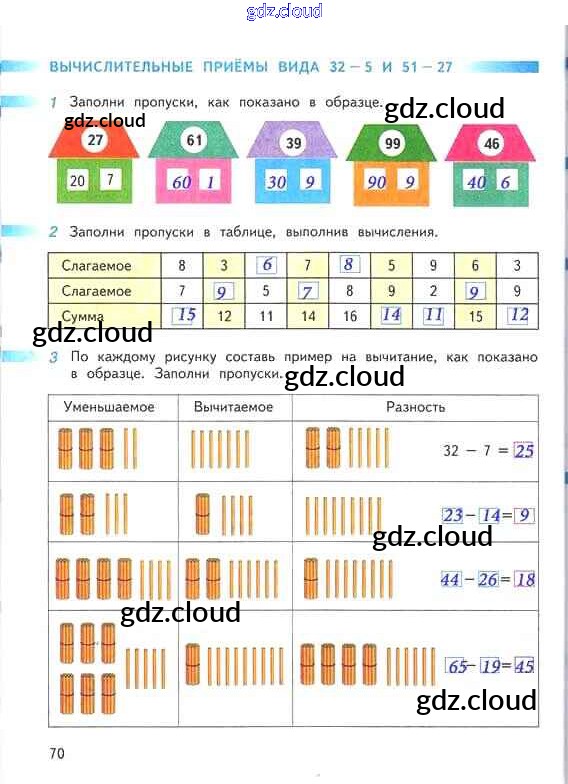 Ответ на задание 70 Рабочая тетрадь Математика за 2 (второй) класс Дорофеев, Миракова, Бука Перспектива 2015 Часть 1, 2