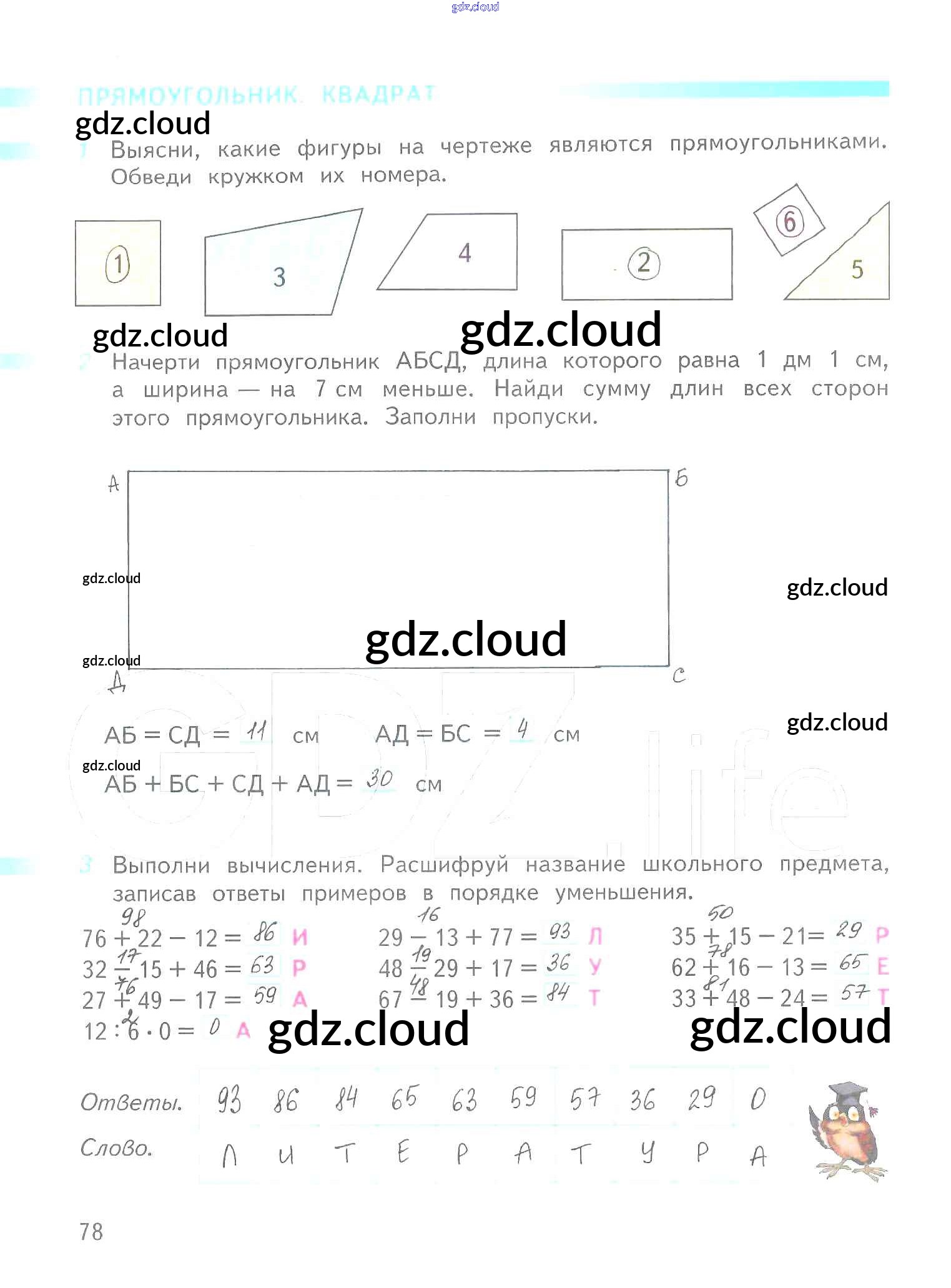 Ответ на задание 78 Рабочая тетрадь Математика за 2 (второй) класс Дорофеев, Миракова, Бука Перспектива 2015 Часть 1, 2