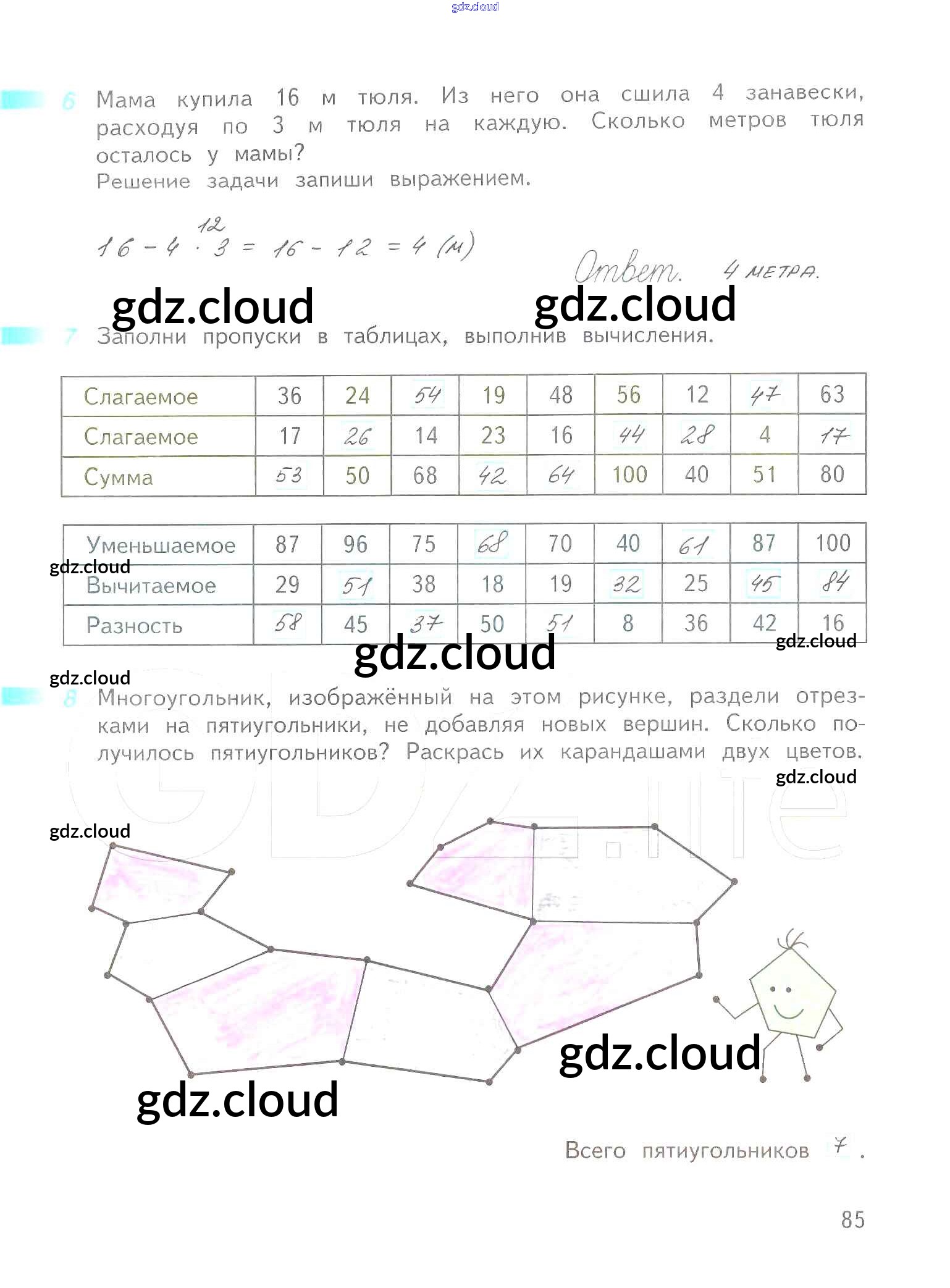 Ответ на задание 85 Рабочая тетрадь Математика за 2 (второй) класс Дорофеев, Миракова, Бука Перспектива 2015 Часть 1, 2