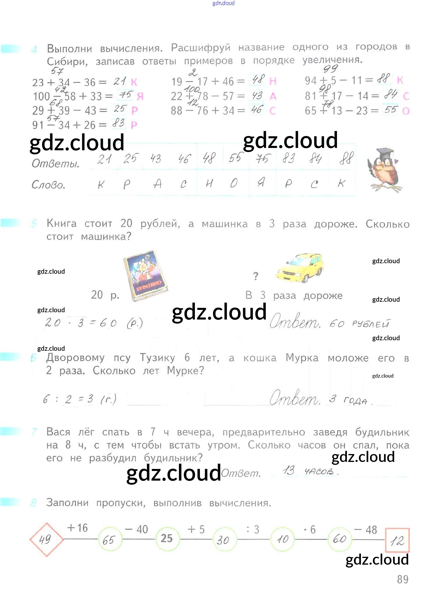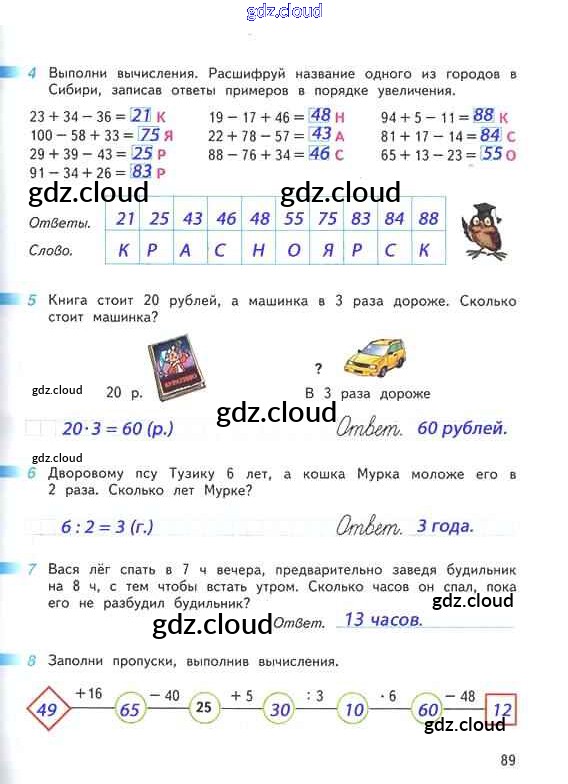 Ответ на задание 89 Рабочая тетрадь Математика за 2 (второй) класс Дорофеев, Миракова, Бука Перспектива 2015 Часть 1, 2
