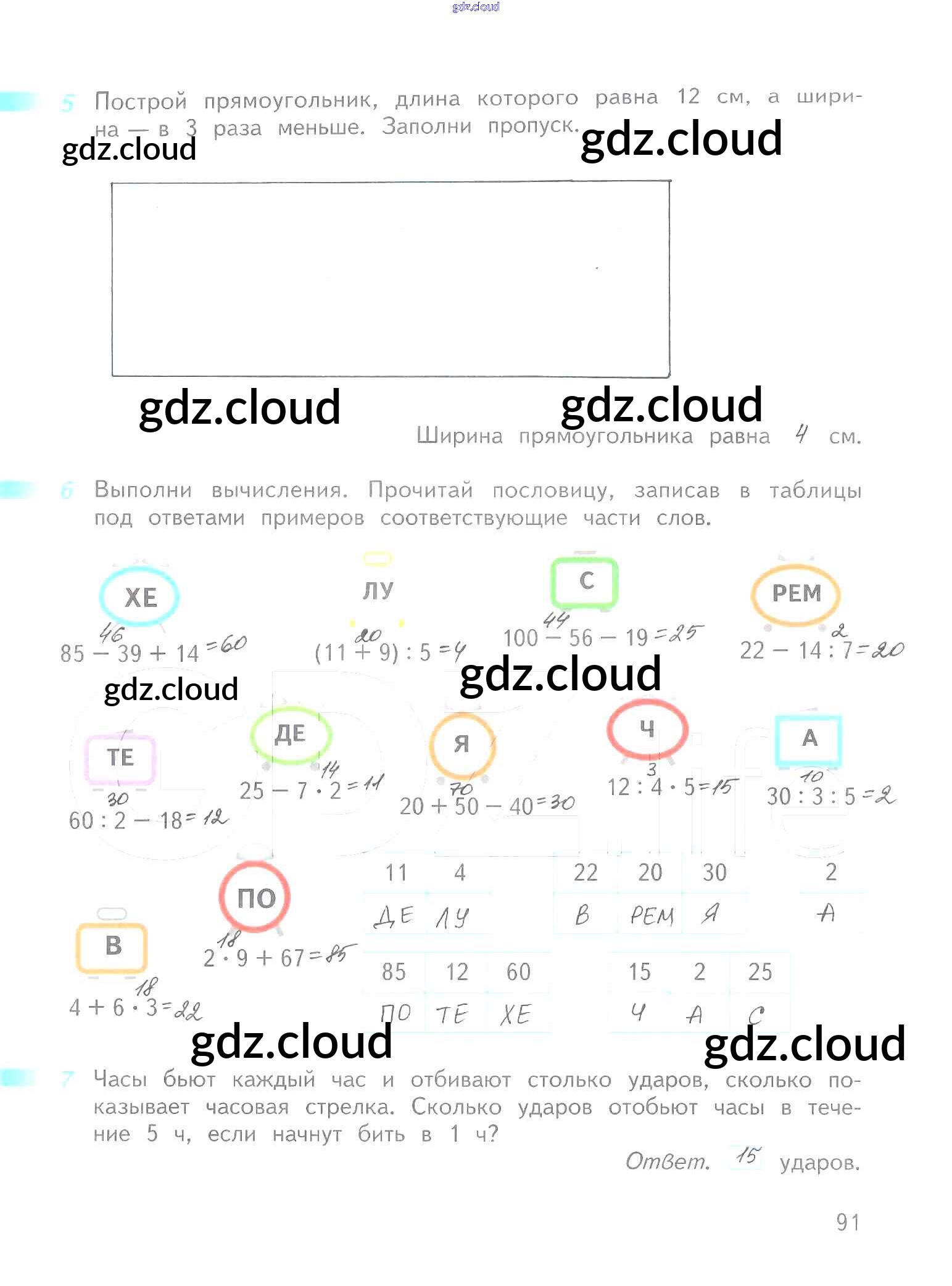 Ответ на задание 91 Рабочая тетрадь Математика за 2 (второй) класс Дорофеев, Миракова, Бука Перспектива 2015 Часть 1, 2