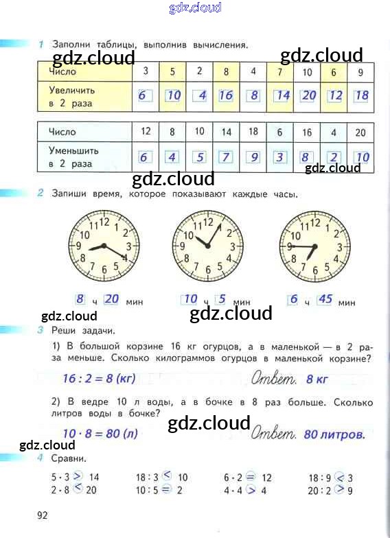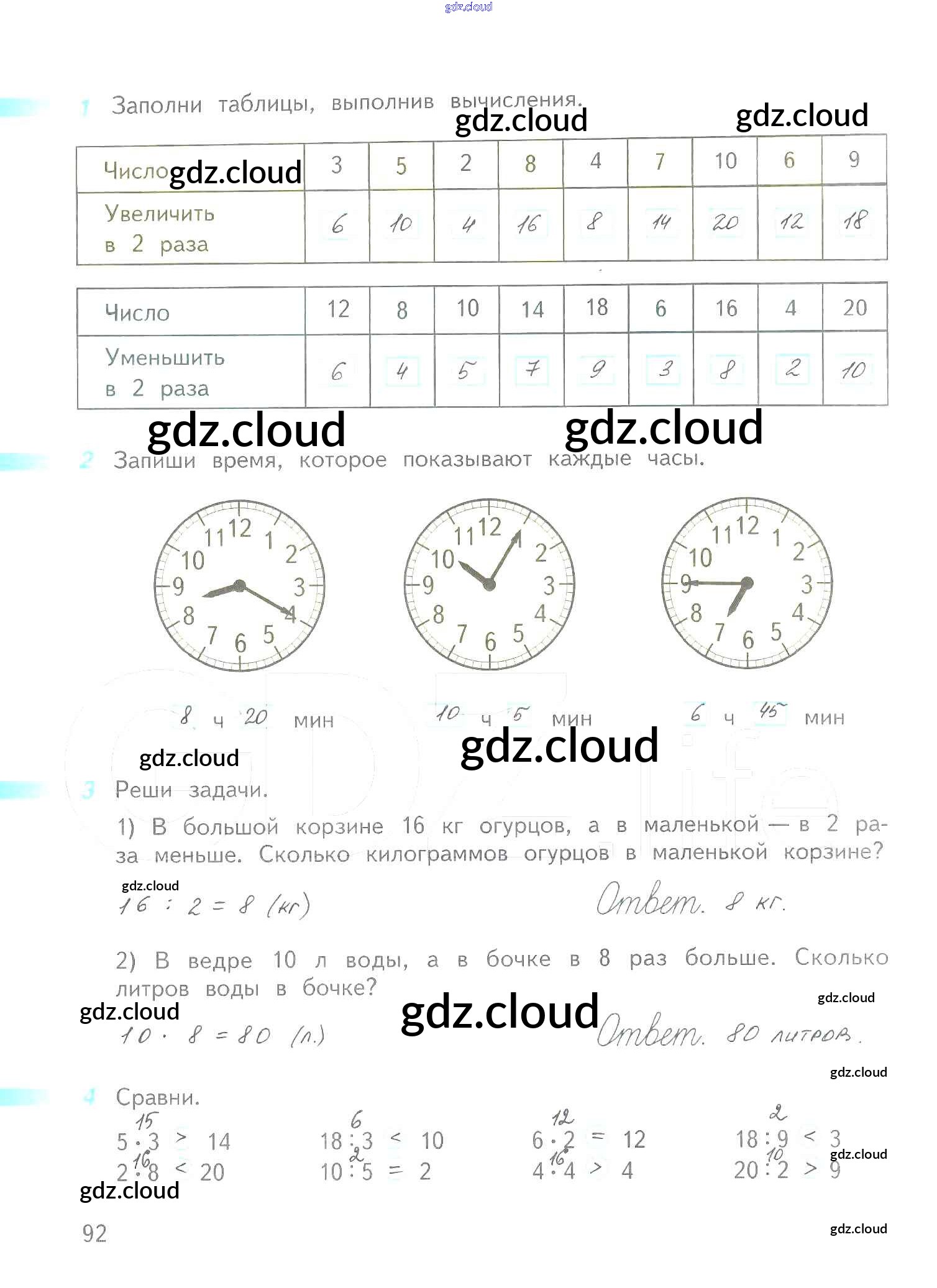 Ответ на задание 92 Рабочая тетрадь Математика за 2 (второй) класс Дорофеев, Миракова, Бука Перспектива 2015 Часть 1, 2