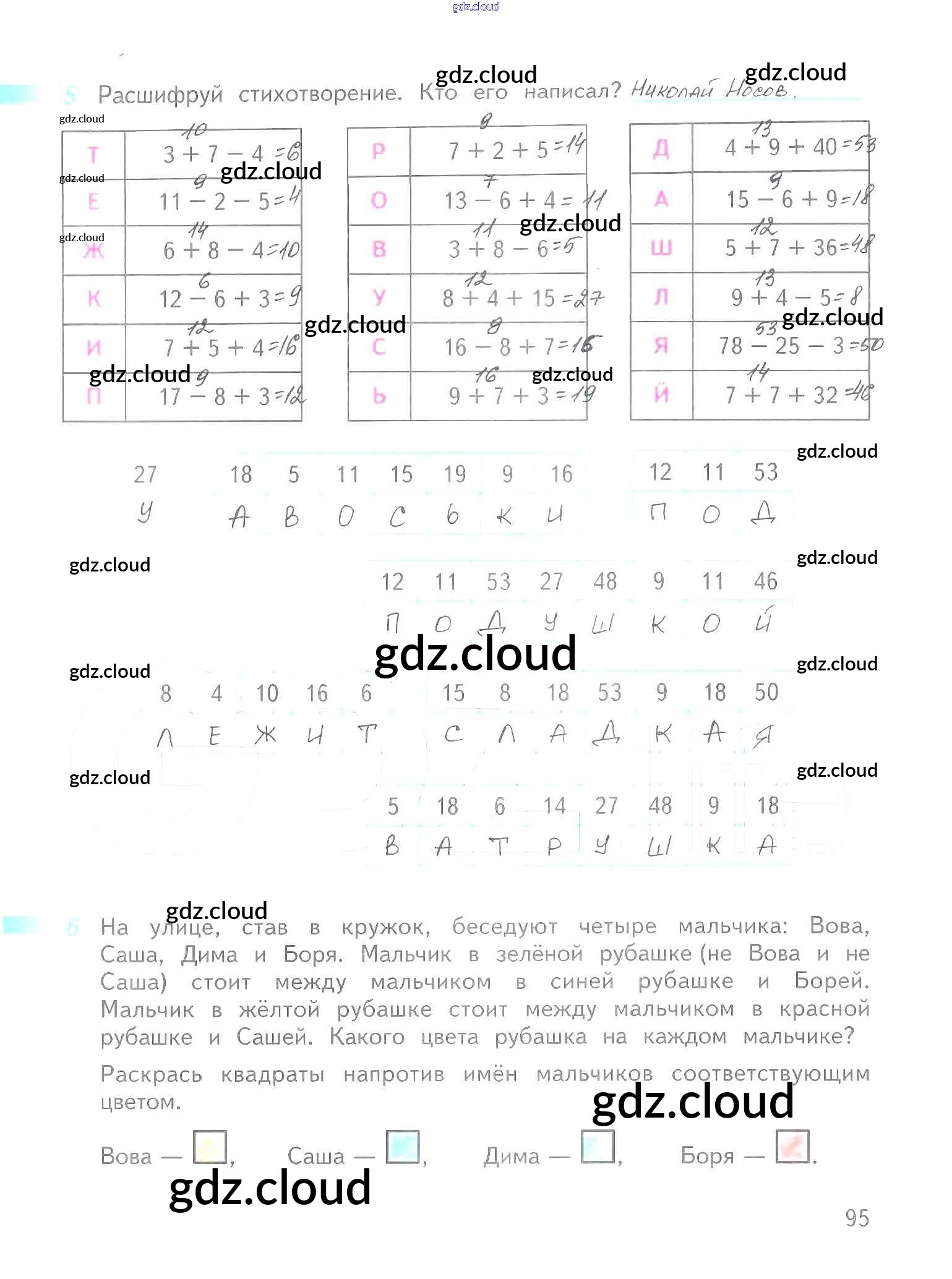 Ответ на задание 95 Рабочая тетрадь Математика за 2 (второй) класс Дорофеев, Миракова, Бука Перспектива 2015 Часть 1, 2
