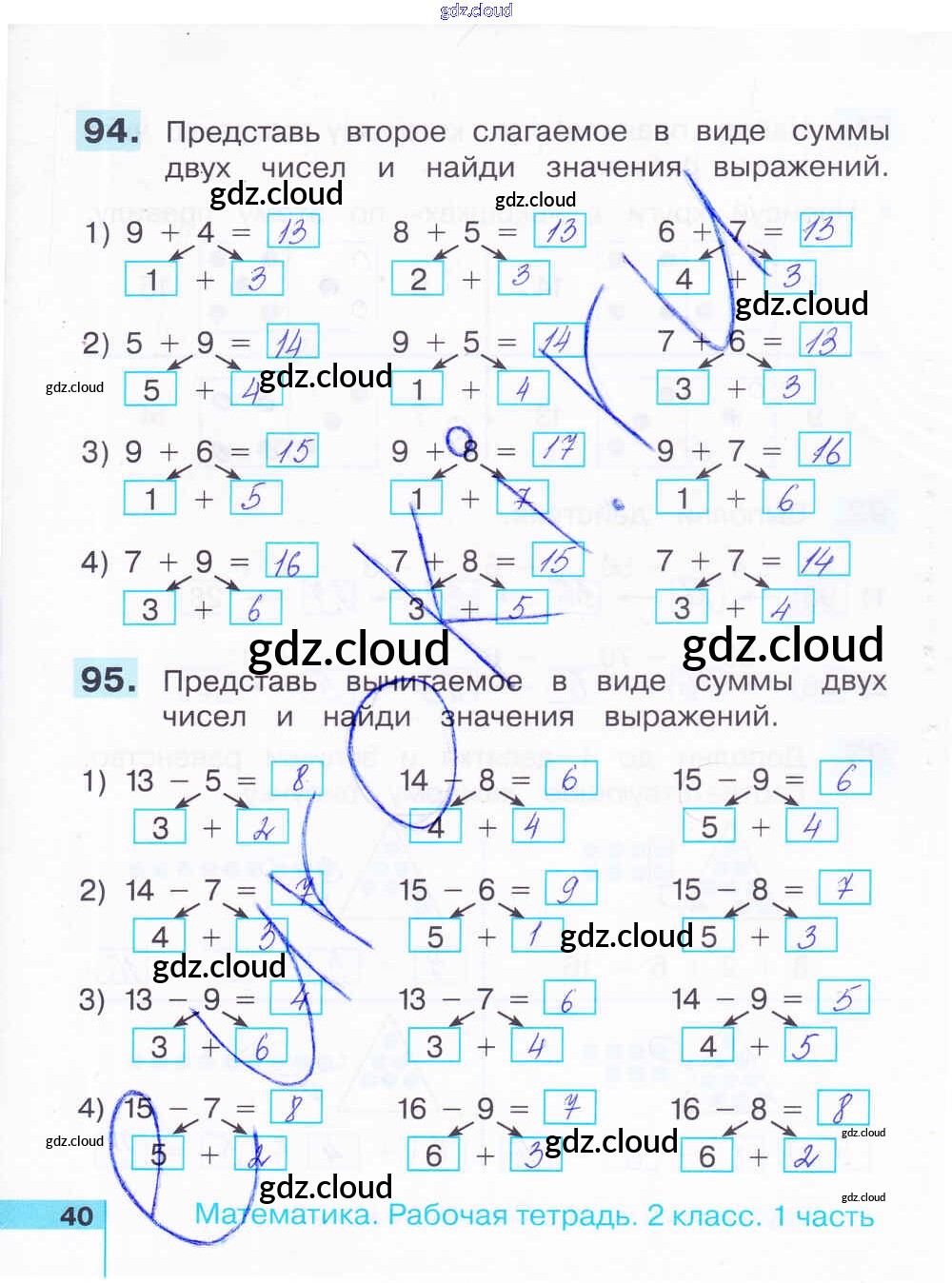 Ответ на задание 40 Рабочая тетрадь Математика за 2 (второй) класс Истомина, Редько 2016 Часть 1, 2