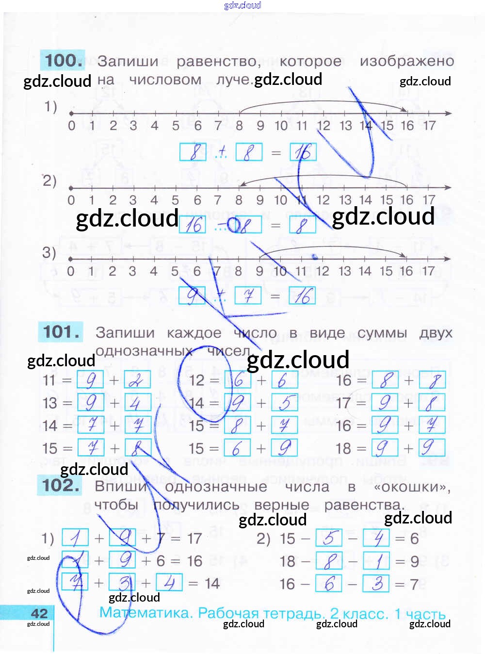 Ответ на задание 42 Рабочая тетрадь Математика за 2 (второй) класс Истомина, Редько 2016 Часть 1, 2