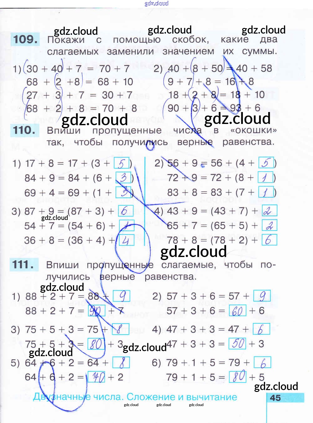 Ответ на задание 45 Рабочая тетрадь Математика за 2 (второй) класс Истомина, Редько 2016 Часть 1, 2