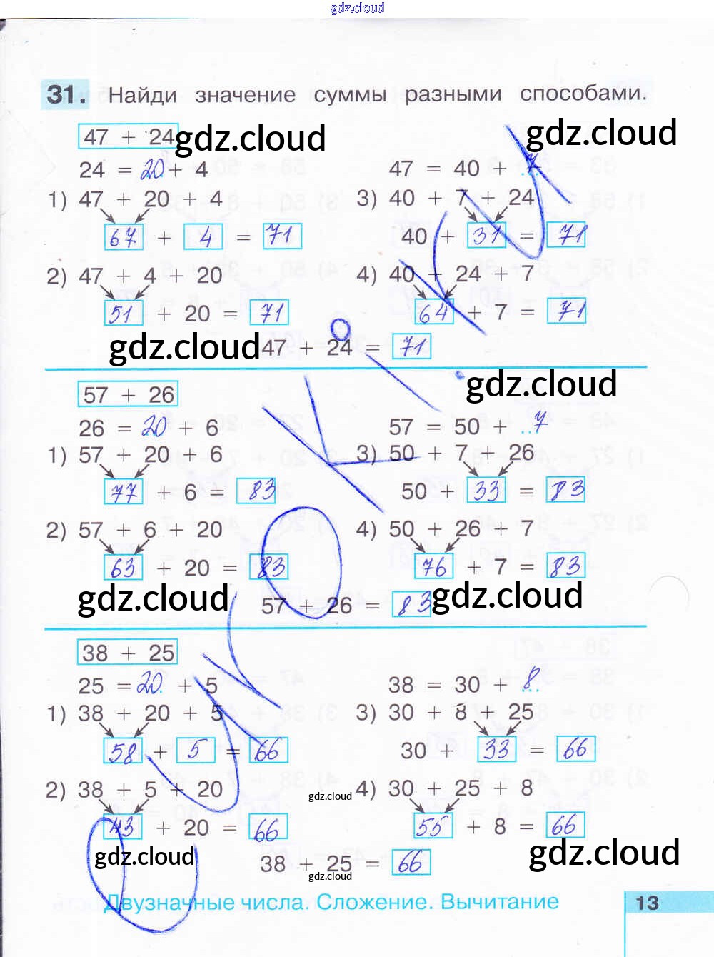 Ответ на задание 13 Рабочая тетрадь Математика за 2 (второй) класс Истомина, Редько 2016 Часть 1, 2