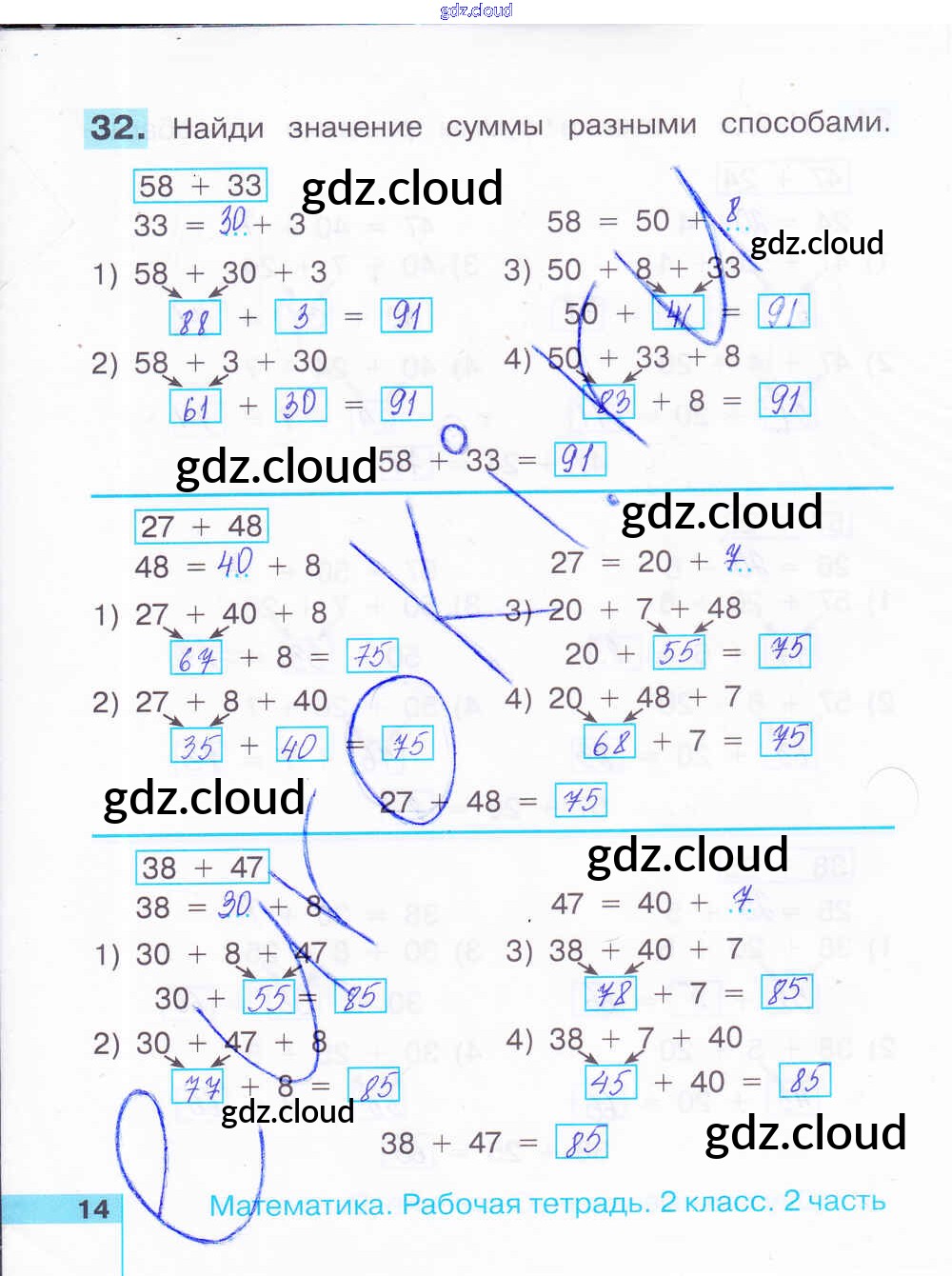 Ответ на задание 14 Рабочая тетрадь Математика за 2 (второй) класс Истомина, Редько 2016 Часть 1, 2