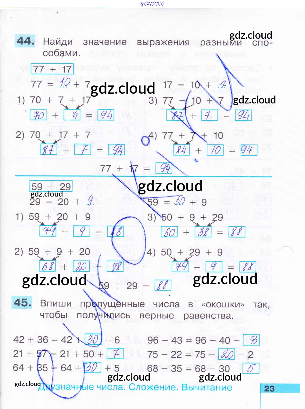Ответ на задание 23 Рабочая тетрадь Математика за 2 (второй) класс Истомина, Редько 2016 Часть 1, 2