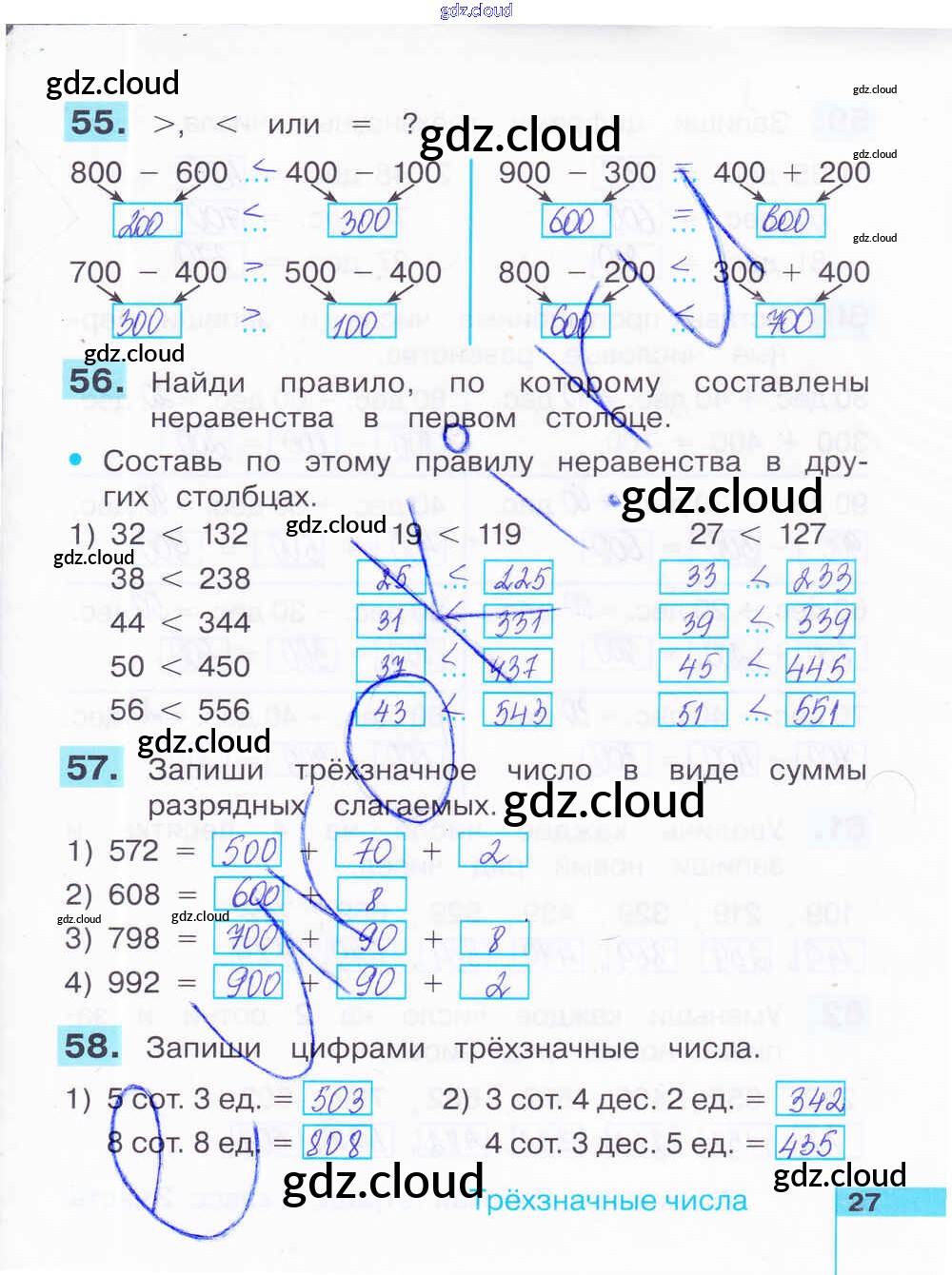 Ответ на задание 27 Рабочая тетрадь Математика за 2 (второй) класс Истомина, Редько 2016 Часть 1, 2