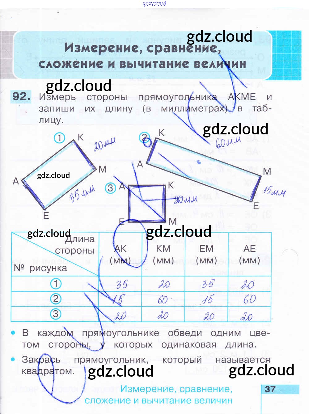 Ответ на задание 37 Рабочая тетрадь Математика за 2 (второй) класс Истомина, Редько 2016 Часть 1, 2