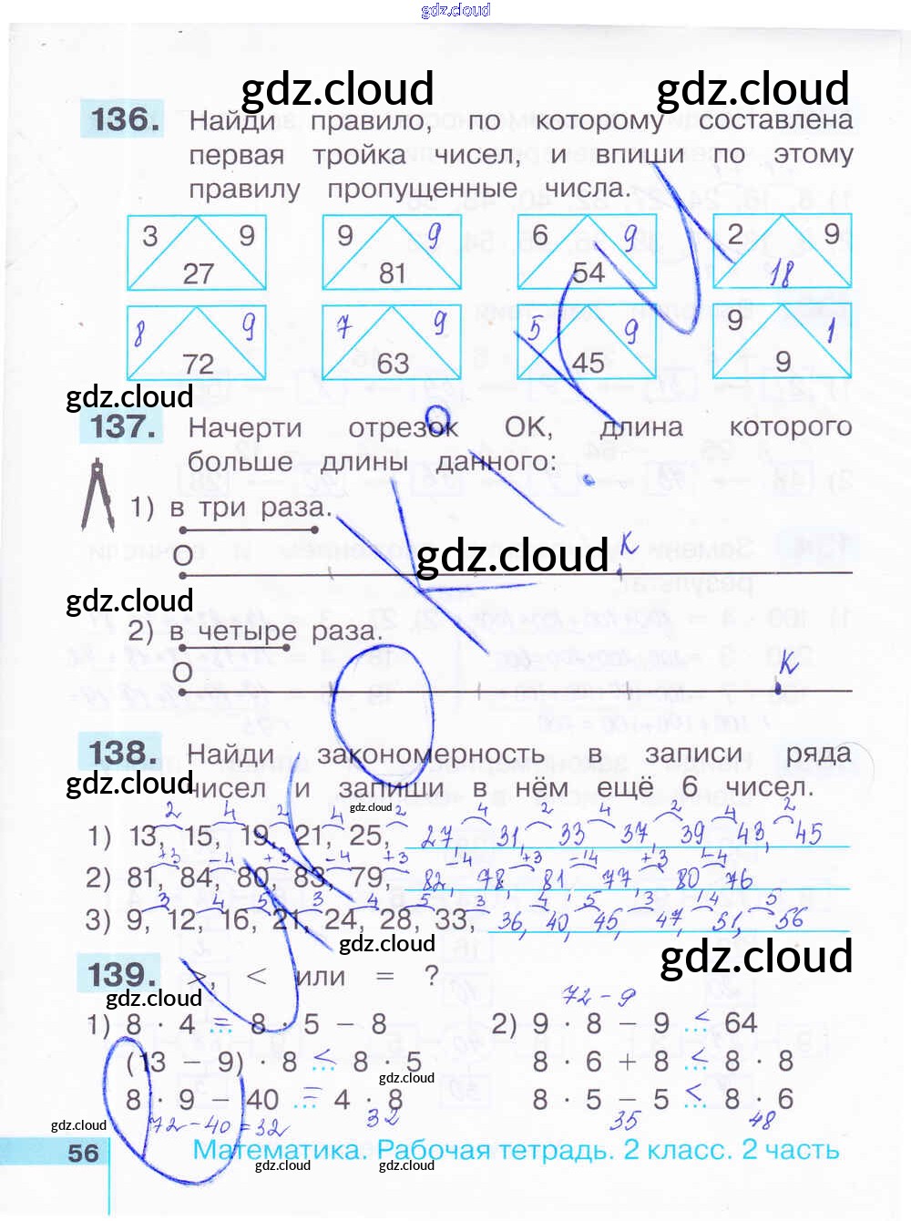 Ответ на задание 56 Рабочая тетрадь Математика за 2 (второй) класс Истомина, Редько 2016 Часть 1, 2