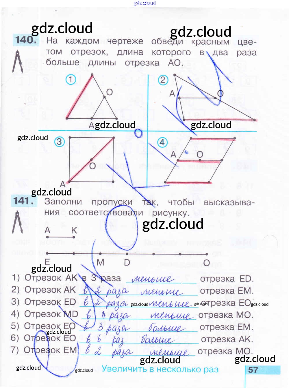Ответ на задание 57 Рабочая тетрадь Математика за 2 (второй) класс Истомина, Редько 2016 Часть 1, 2