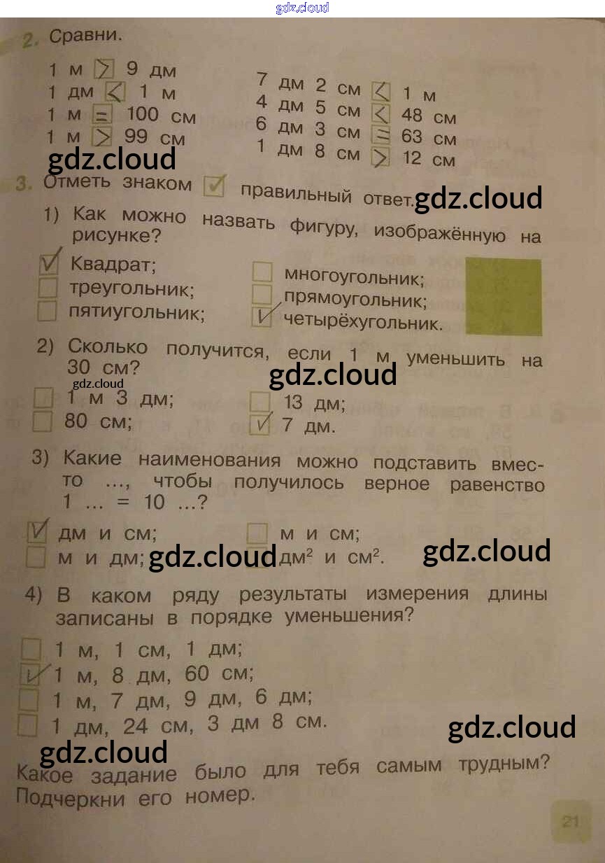 Ответ на задание 21 Рабочая тетрадь Математика за 2 (второй) класс Муравина 2016 Часть 1 ФГОС онлайн и без номера телефона.