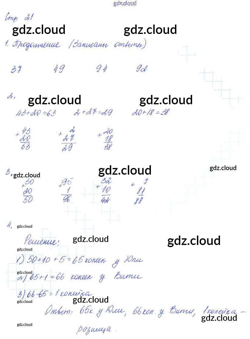Ответ на задание 21 Рабочая тетрадь Математика за 2 (второй) класс Рудницкая, Юдачева Начальная школа XXI века 2014 Часть 1, 2