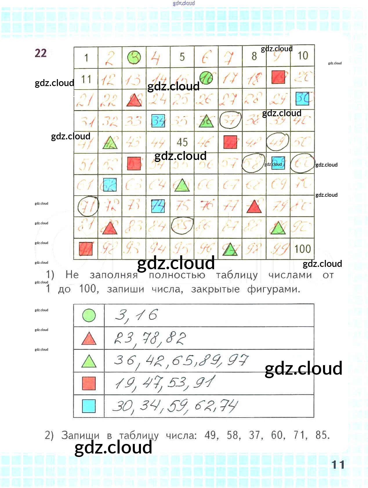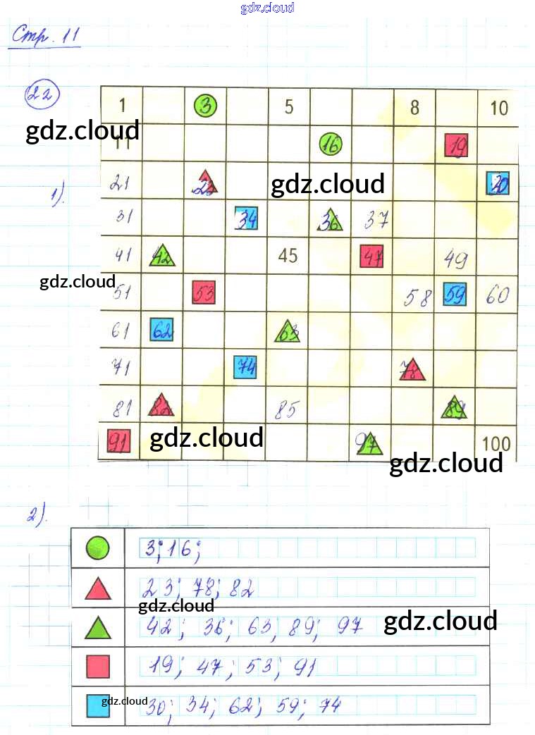 Ответ на задание стр.11 Рабочая тетрадь Математика за 2 (второй) класс Волкова, Моро Школа России 2016 Часть 1, 2