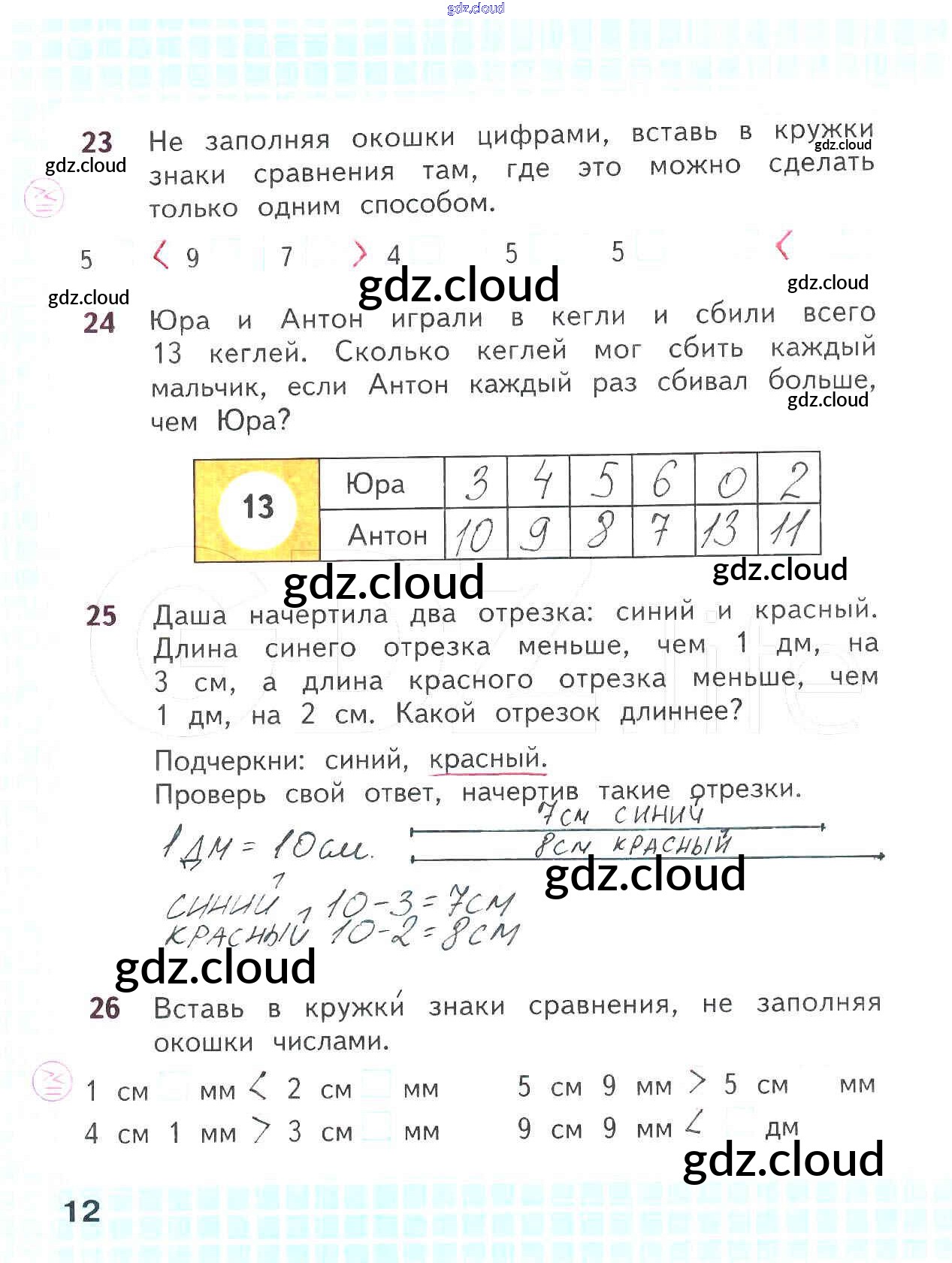 Ответ на задание стр.12 Рабочая тетрадь Математика за 2 (второй) класс Волкова, Моро Школа России 2016 Часть 1, 2