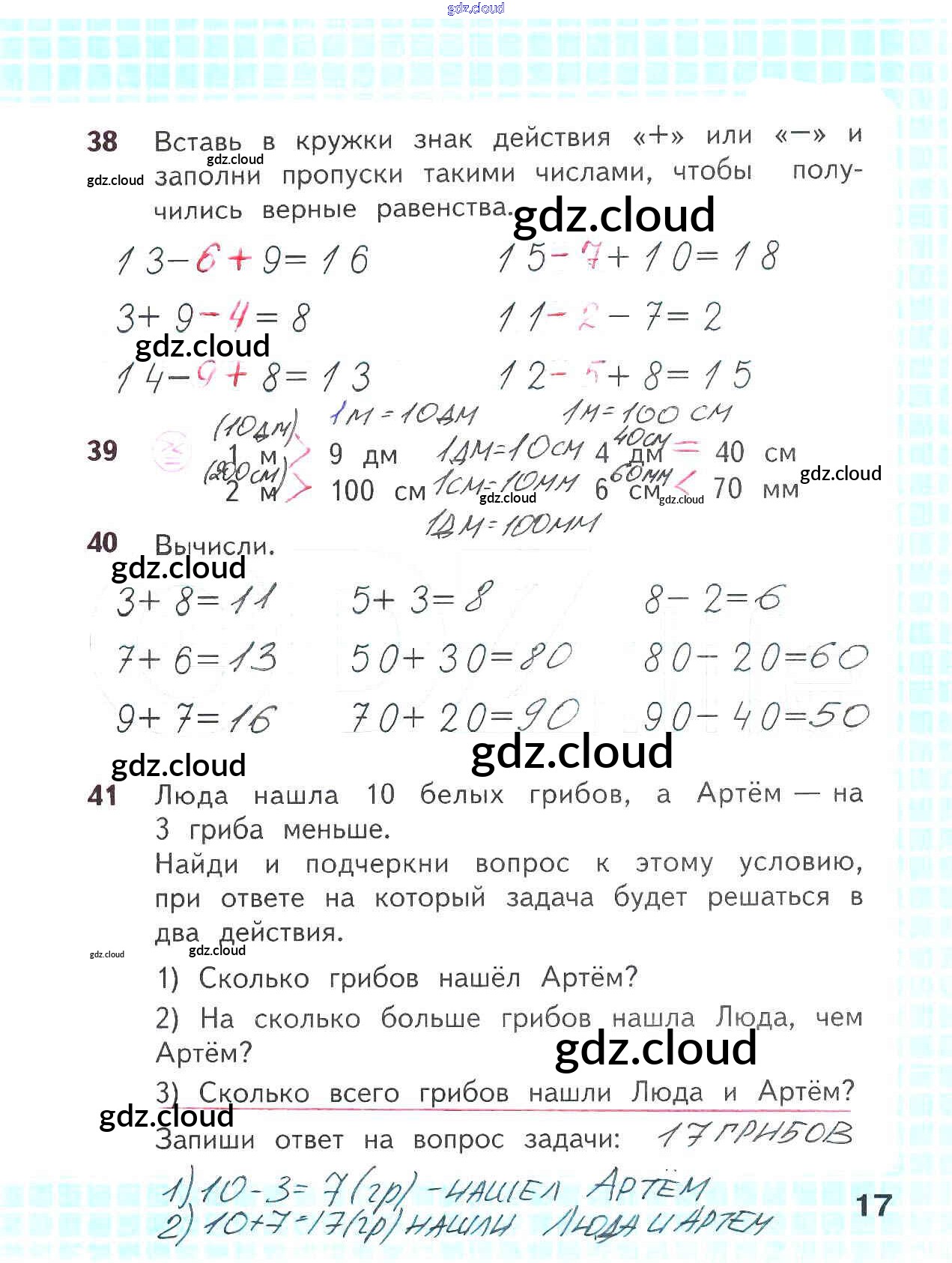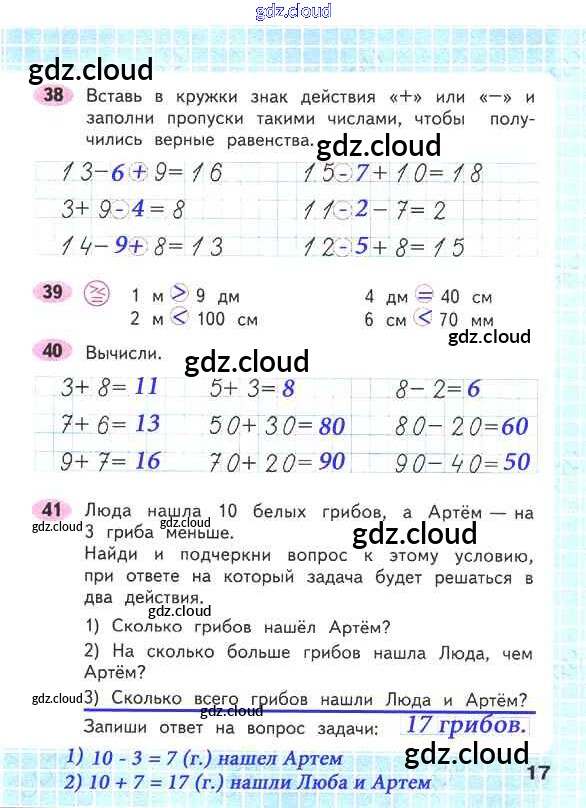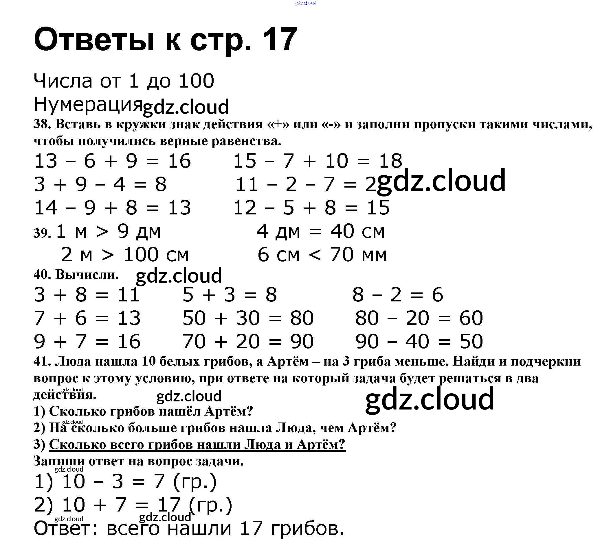 Ответ на задание стр.17 Рабочая тетрадь Математика за 2 (второй) класс Волкова, Моро Школа России 2016 Часть 1, 2