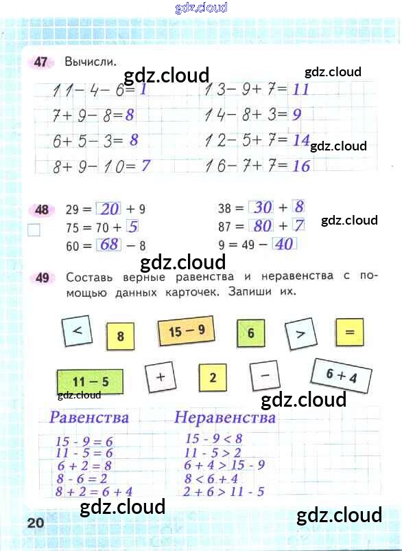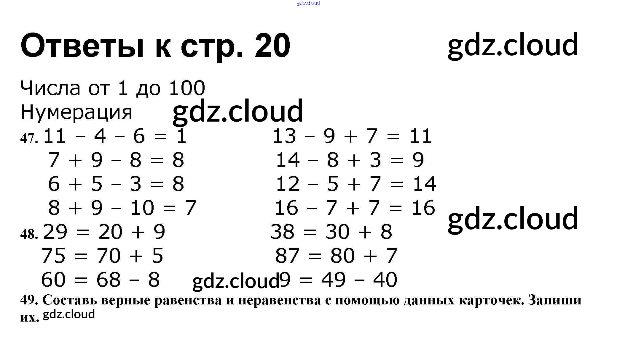Ответ на задание стр.20 Рабочая тетрадь Математика за 2 (второй) класс Волкова, Моро Школа России 2016 Часть 1, 2