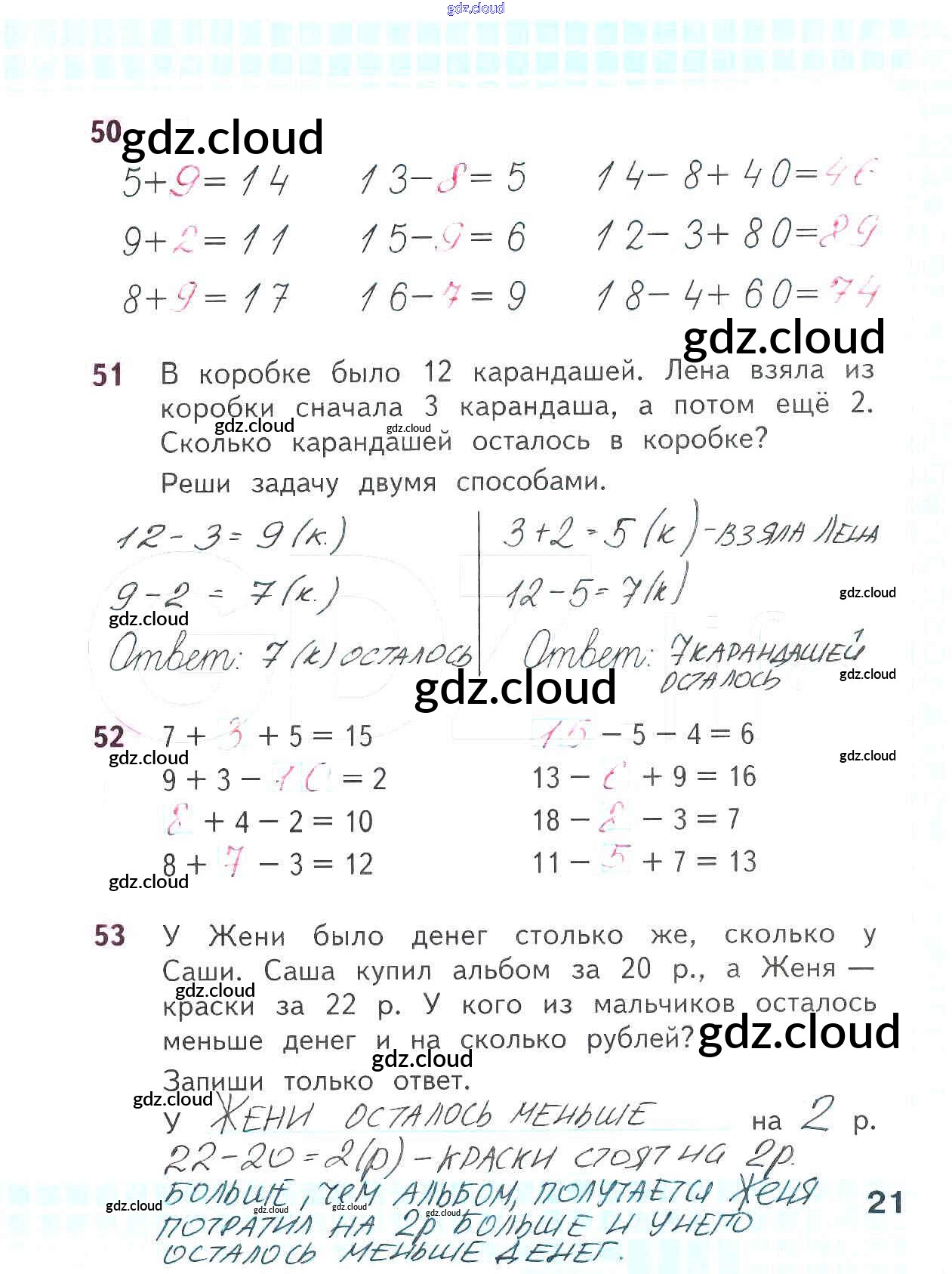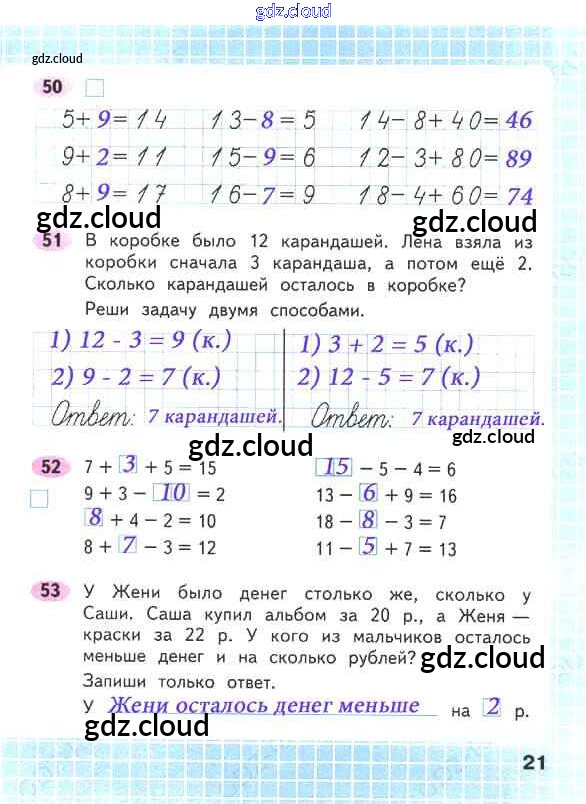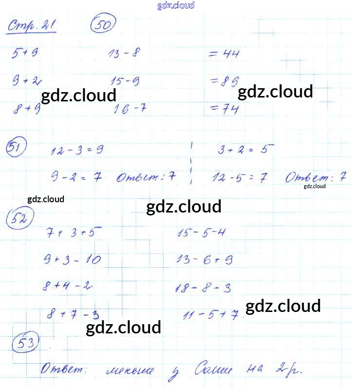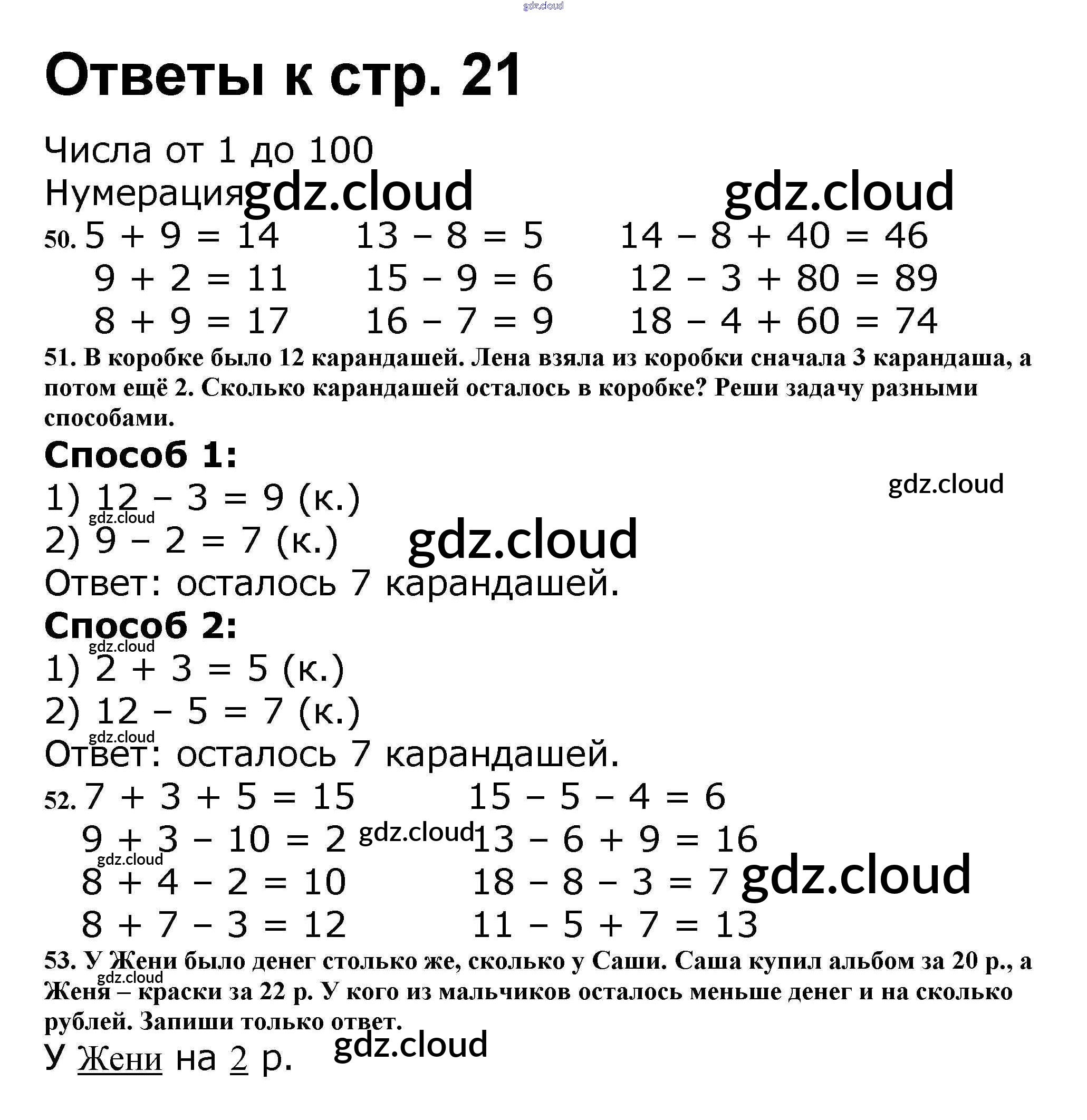 Ответ на задание стр.21 Рабочая тетрадь Математика за 2 (второй) класс Волкова, Моро Школа России 2016 Часть 1, 2