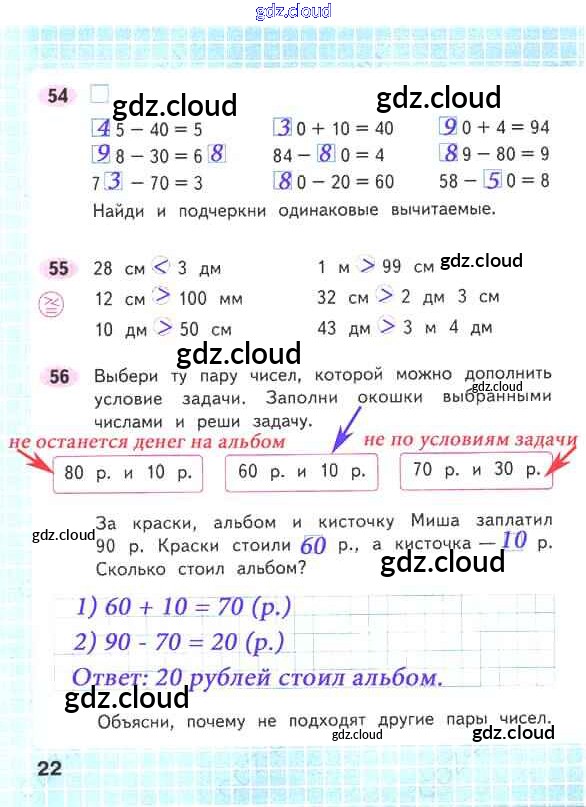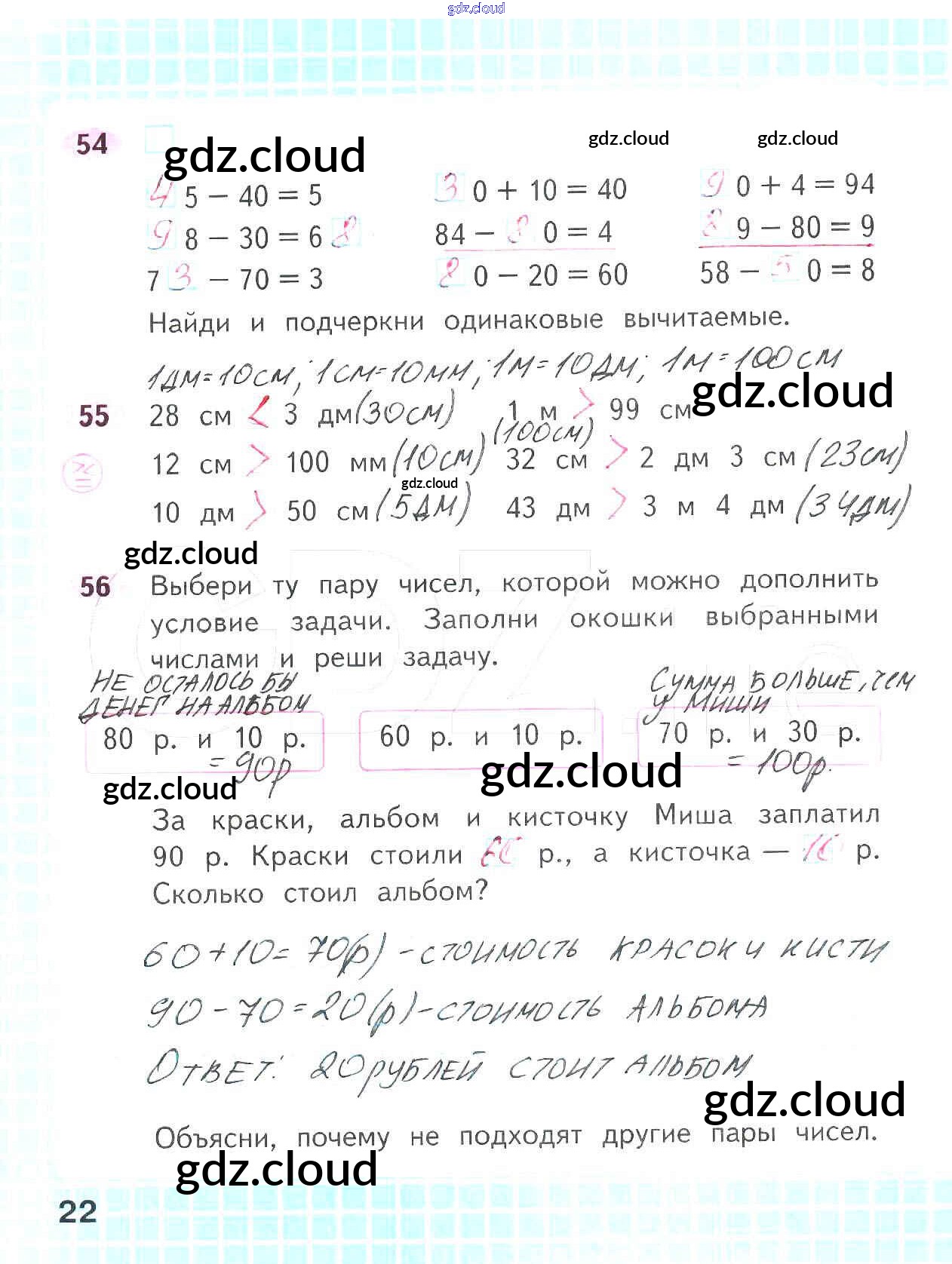 Ответ на задание стр.22 Рабочая тетрадь Математика за 2 (второй) класс Волкова, Моро Школа России 2016 Часть 1, 2