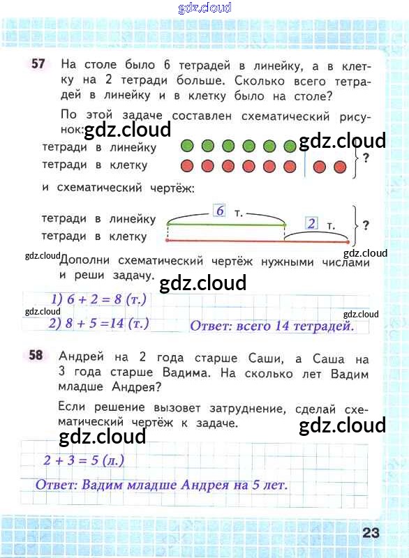 Ответ на задание стр.23 Рабочая тетрадь Математика за 2 (второй) класс Волкова, Моро Школа России 2016 Часть 1, 2