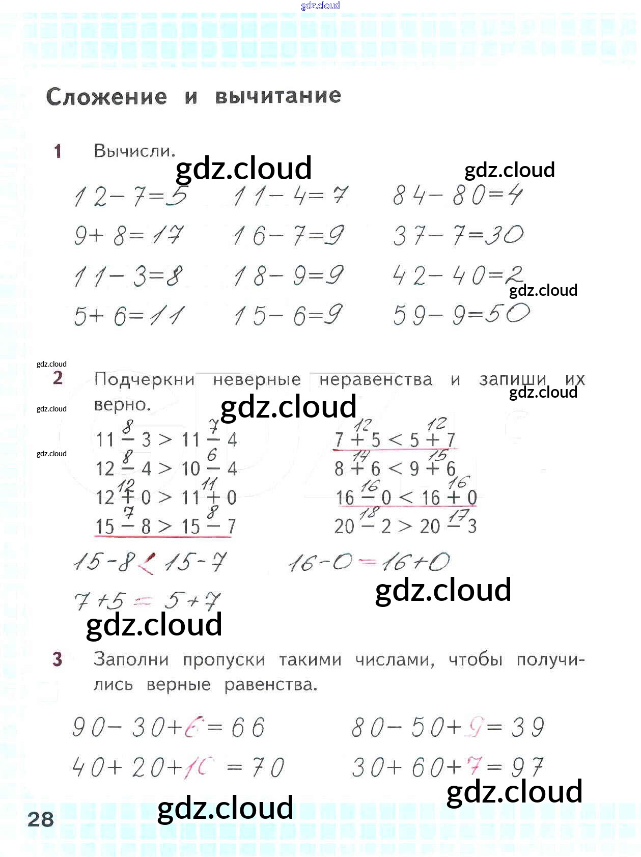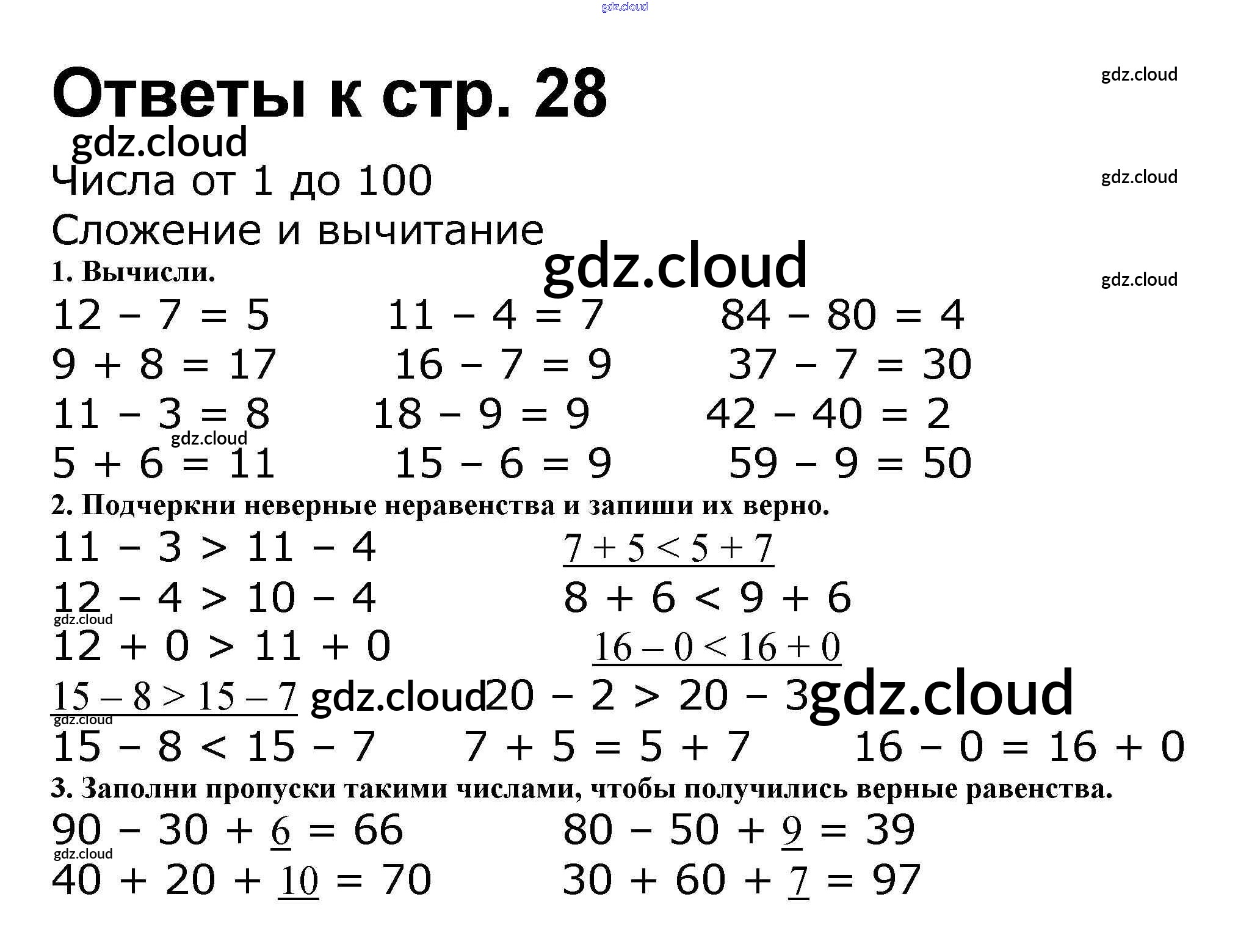 Ответ на задание стр.28 Рабочая тетрадь Математика за 2 (второй) класс Волкова, Моро Школа России 2016 Часть 1, 2
