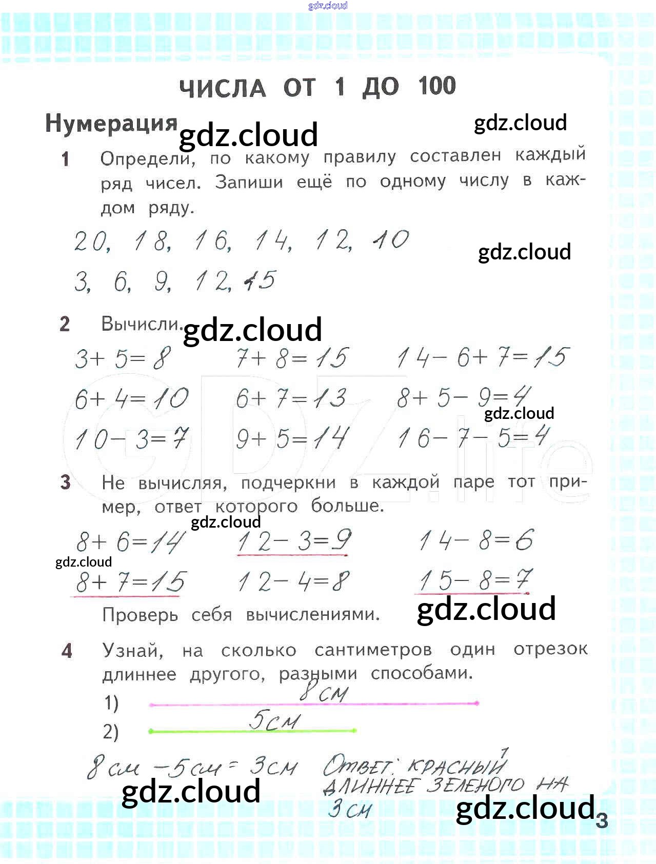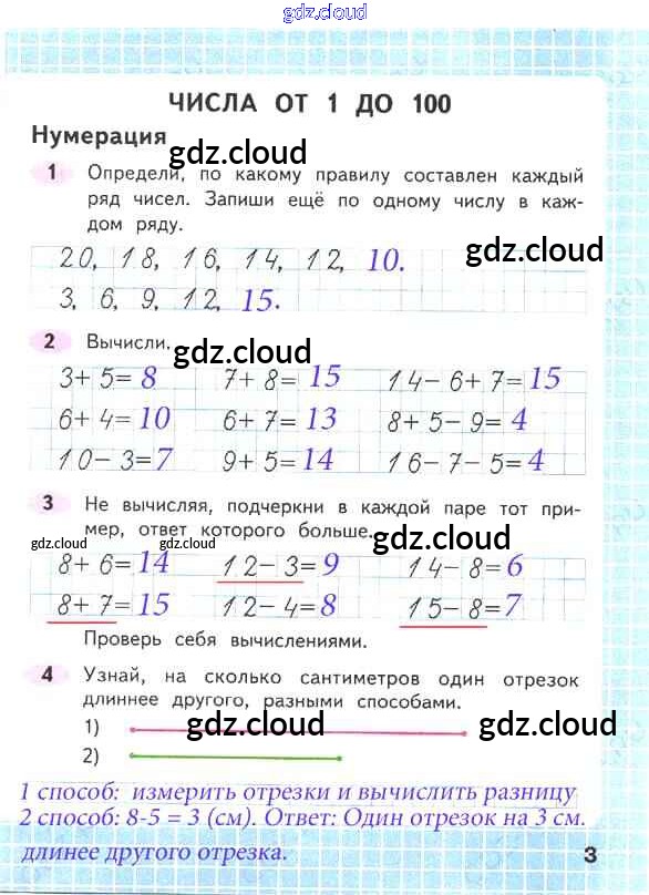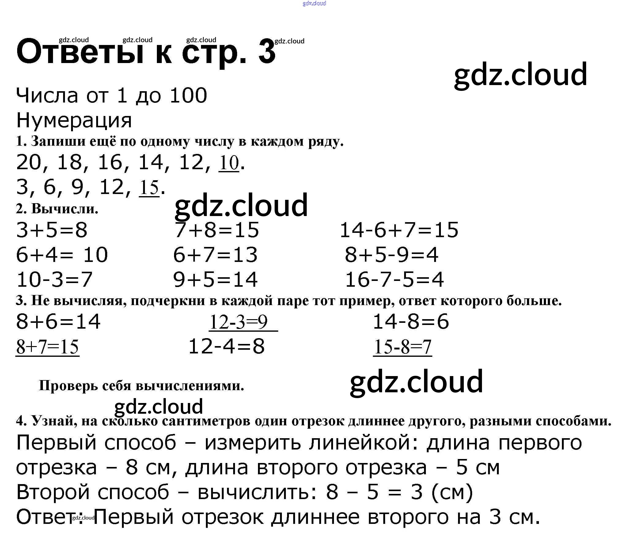 Ответ на задание стр.3 Рабочая тетрадь Математика за 2 (второй) класс Волкова, Моро Школа России 2016 Часть 1, 2