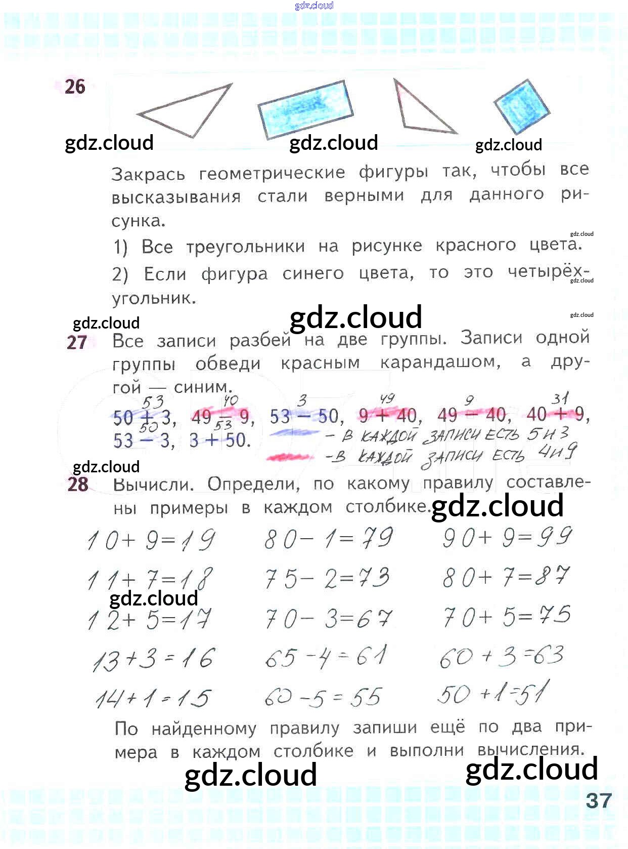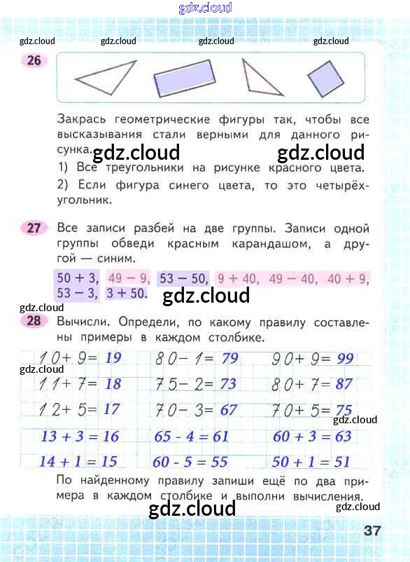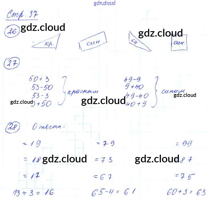 Ответ на задание стр.37 Рабочая тетрадь Математика за 2 (второй) класс Волкова, Моро Школа России 2016 Часть 1, 2