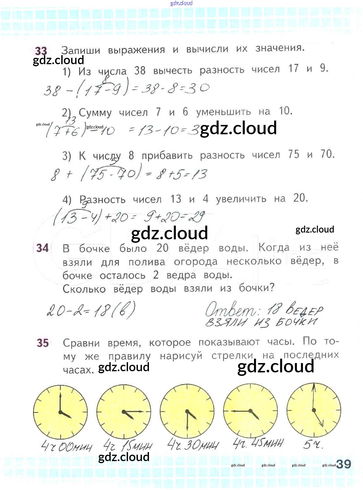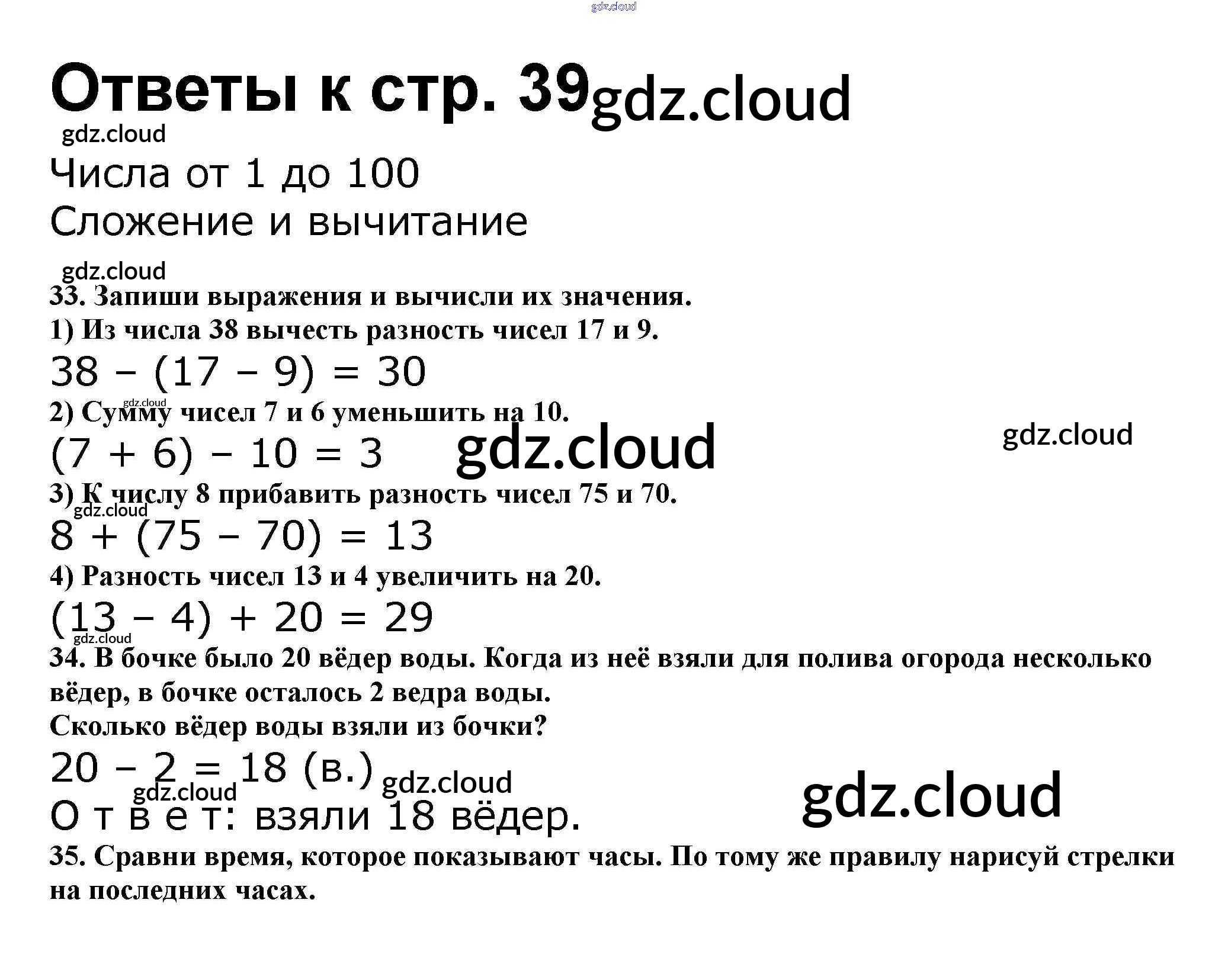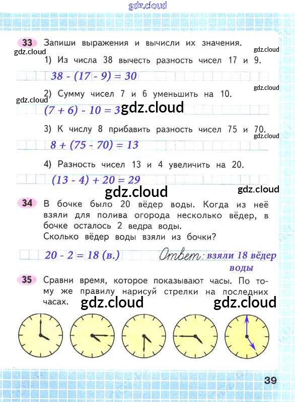 Ответ на задание стр.39 Рабочая тетрадь Математика за 2 (второй) класс Волкова, Моро Школа России 2016 Часть 1, 2