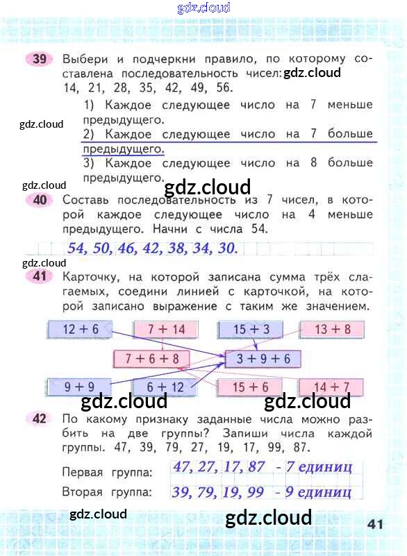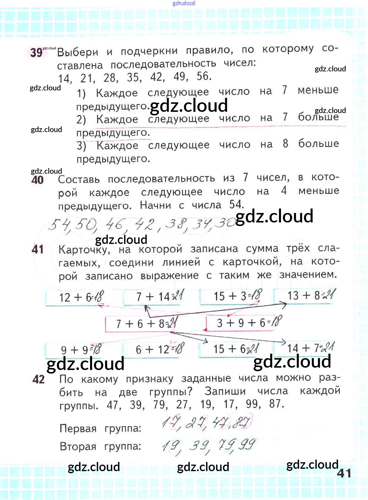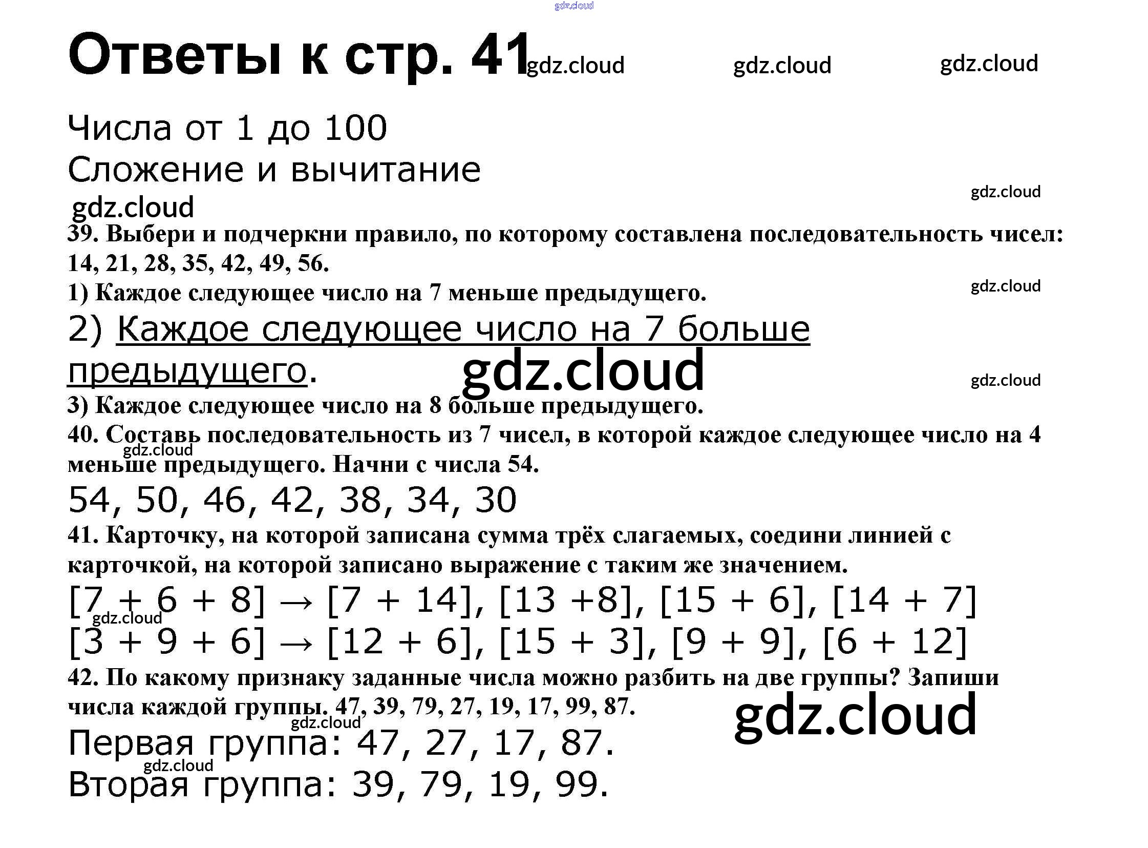 Ответ на задание стр.41 Рабочая тетрадь Математика за 2 (второй) класс Волкова, Моро Школа России 2016 Часть 1, 2