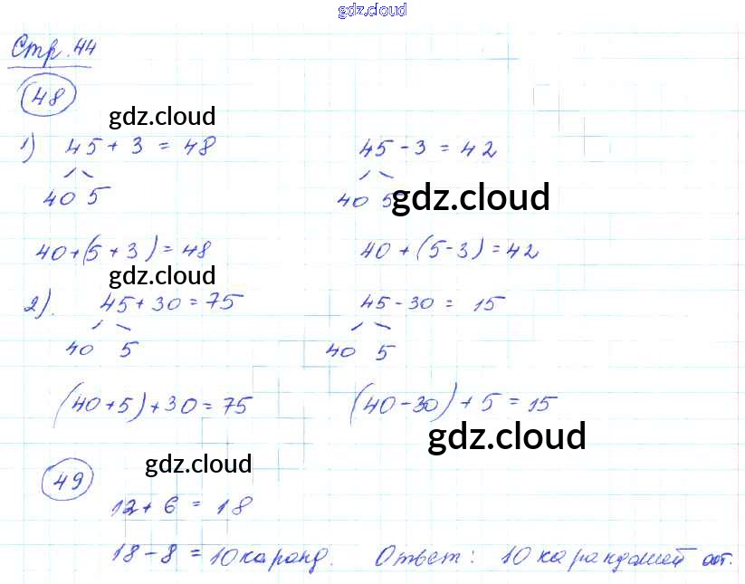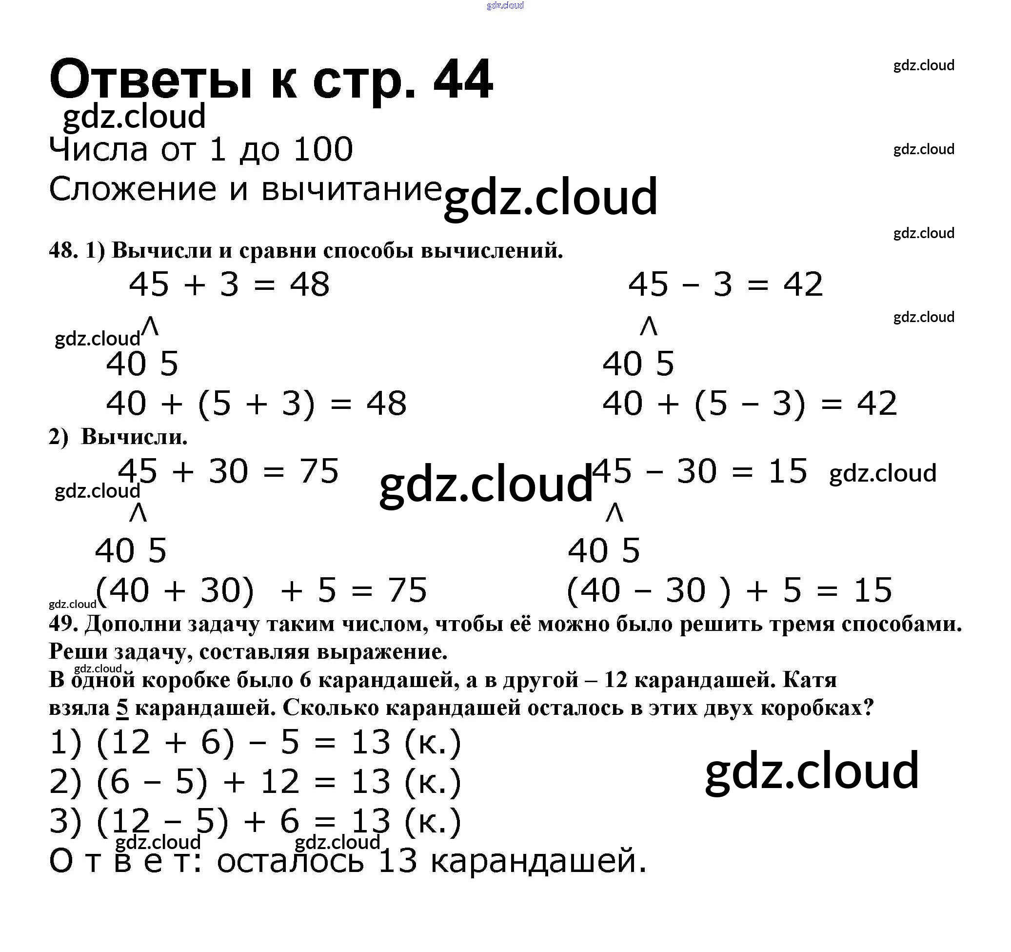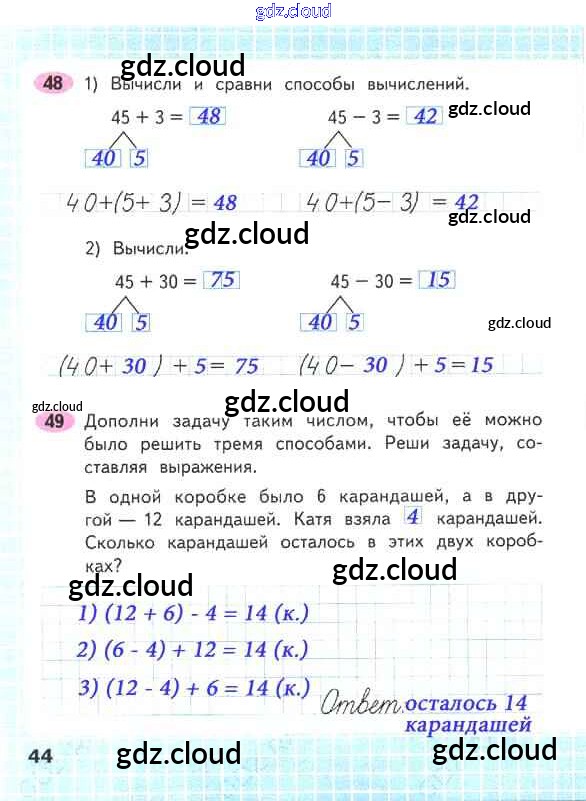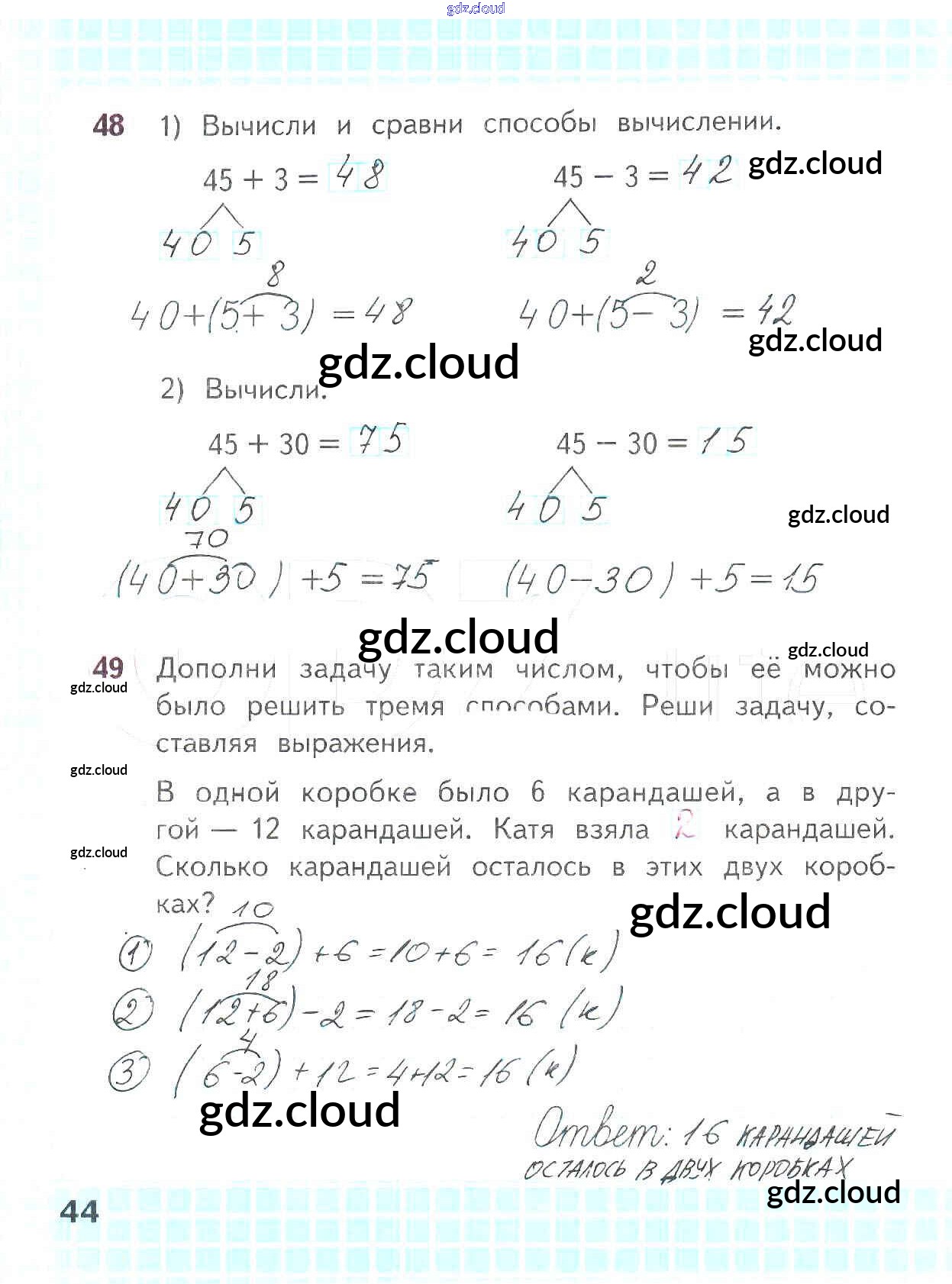 Ответ на задание стр.44 Рабочая тетрадь Математика за 2 (второй) класс Волкова, Моро Школа России 2016 Часть 1, 2