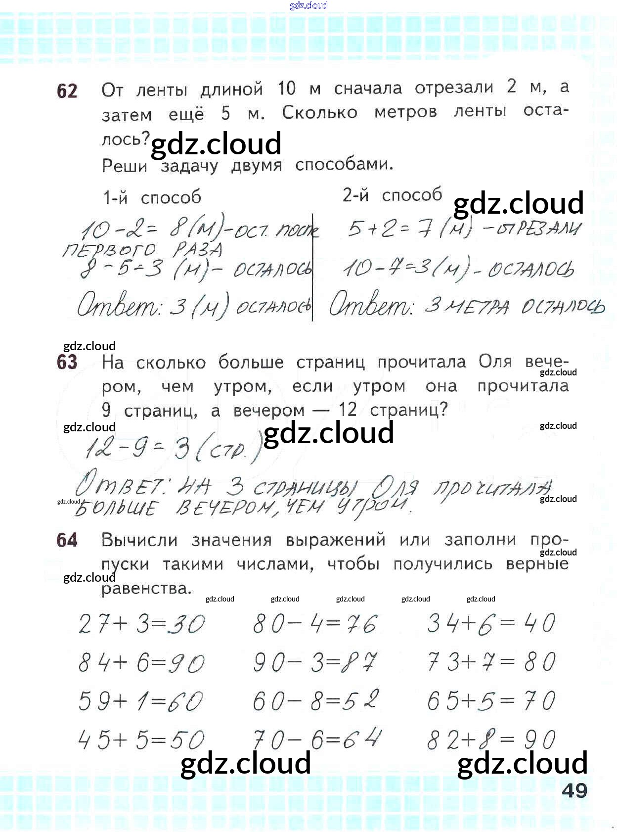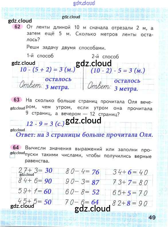 Ответ на задание стр.49 Рабочая тетрадь Математика за 2 (второй) класс Волкова, Моро Школа России 2016 Часть 1, 2