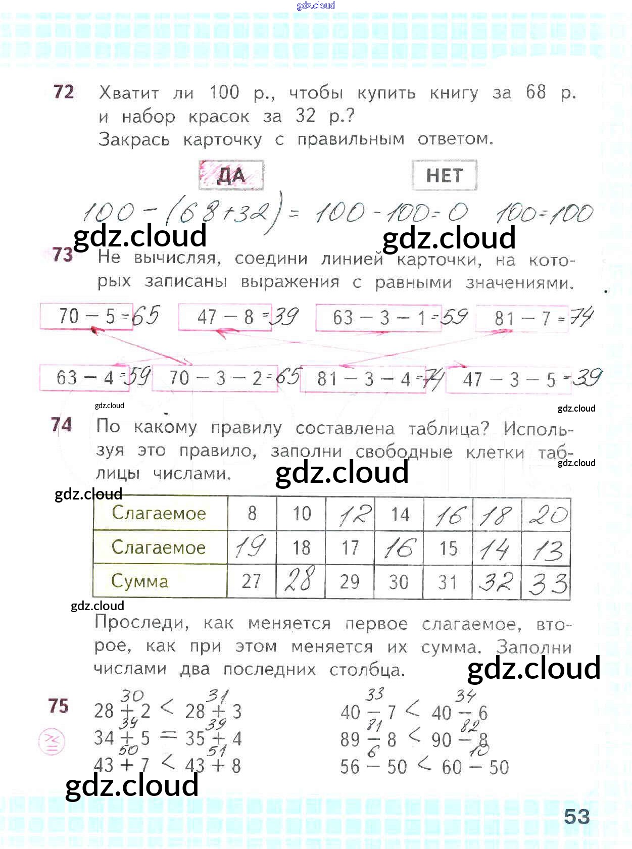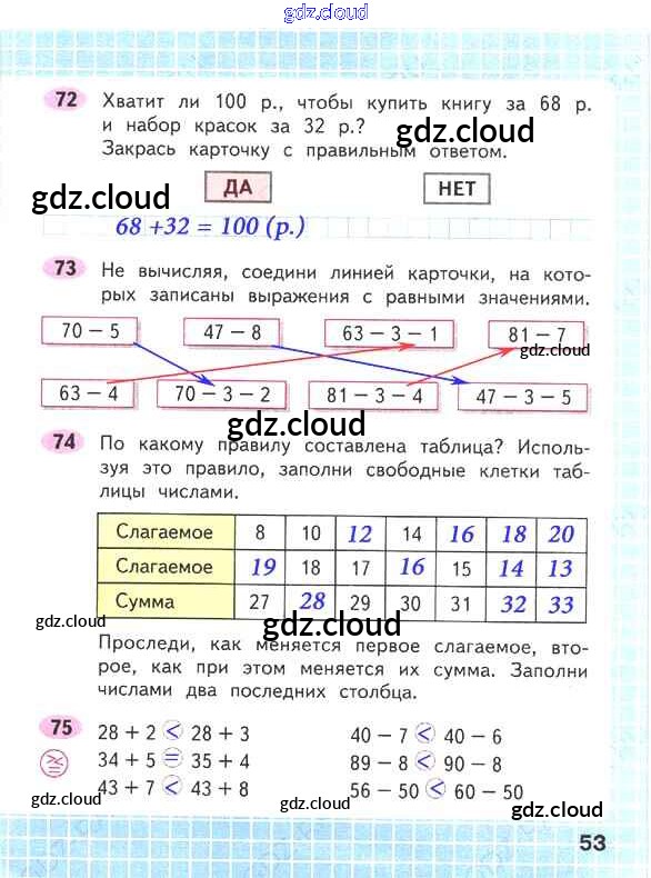 Ответ на задание стр.53 Рабочая тетрадь Математика за 2 (второй) класс Волкова, Моро Школа России 2016 Часть 1, 2