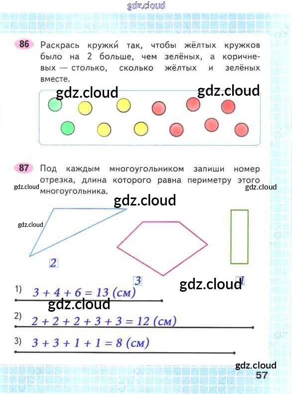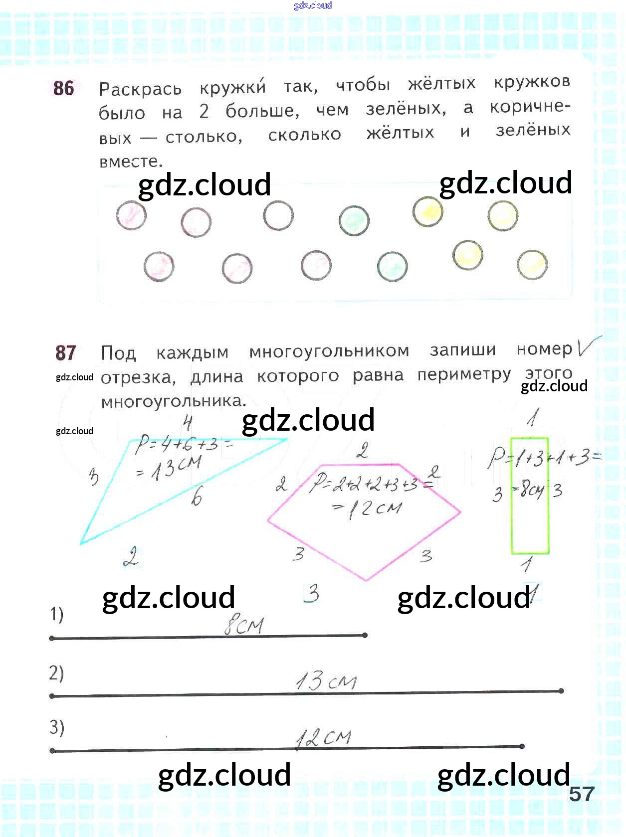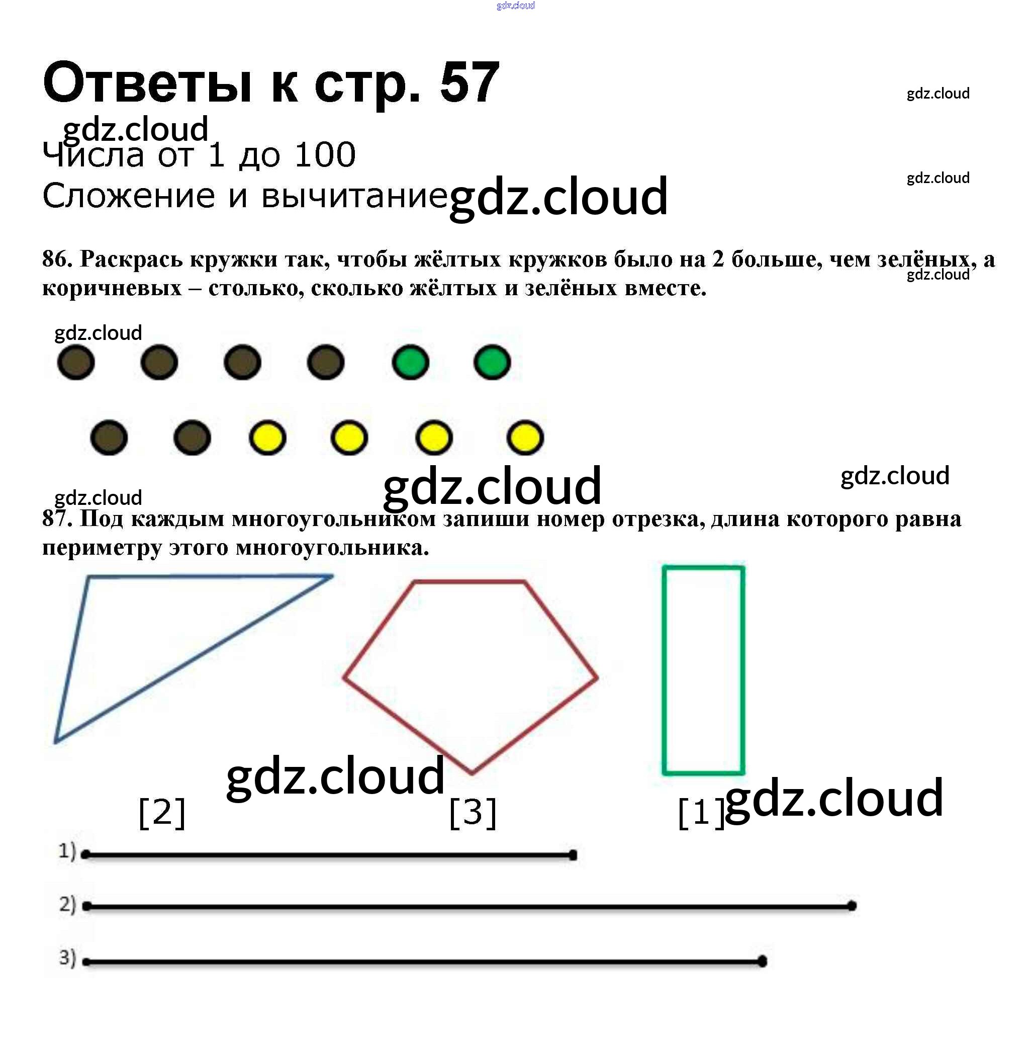 Ответ на задание стр.57 Рабочая тетрадь Математика за 2 (второй) класс Волкова, Моро Школа России 2016 Часть 1, 2