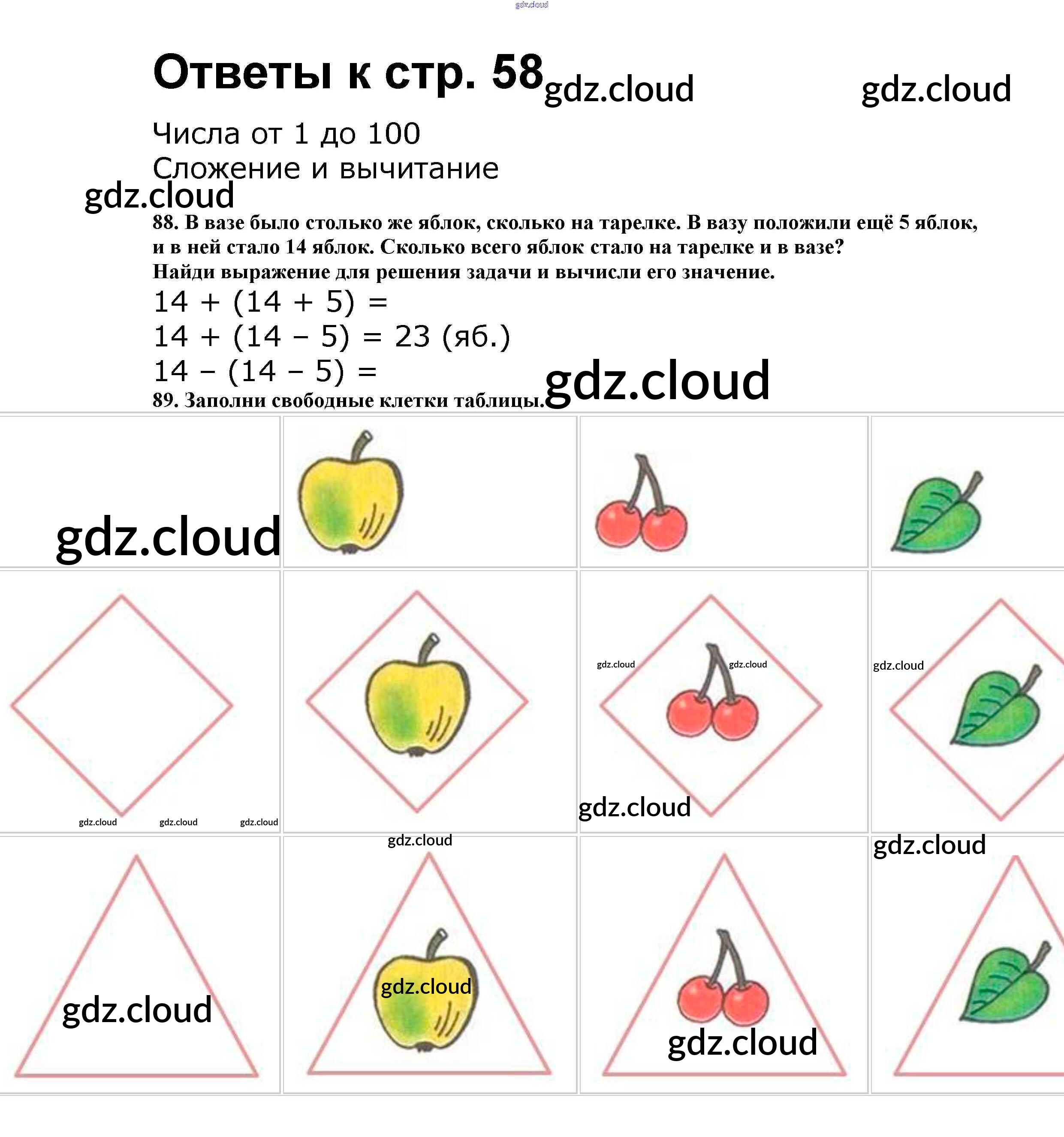 Ответ на задание стр.58 Рабочая тетрадь Математика за 2 (второй) класс Волкова, Моро Школа России 2016 Часть 1, 2