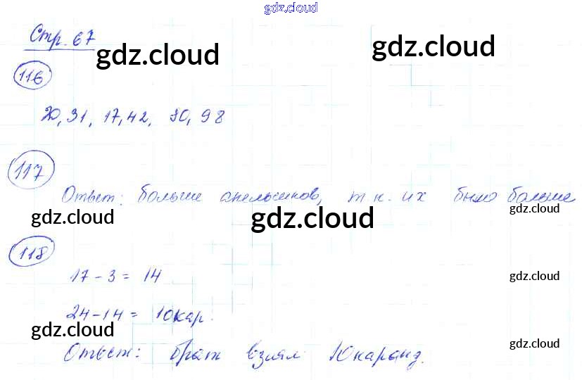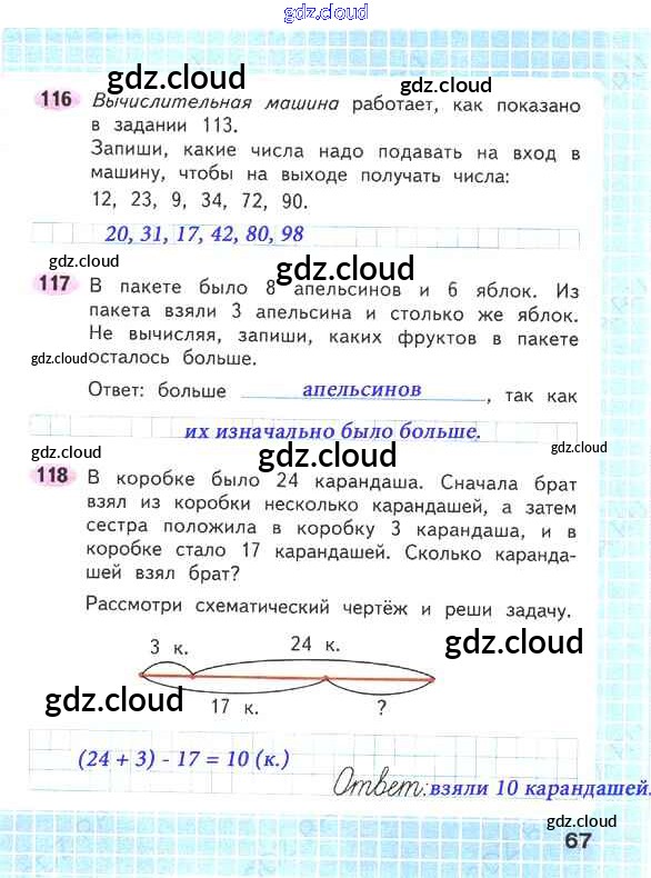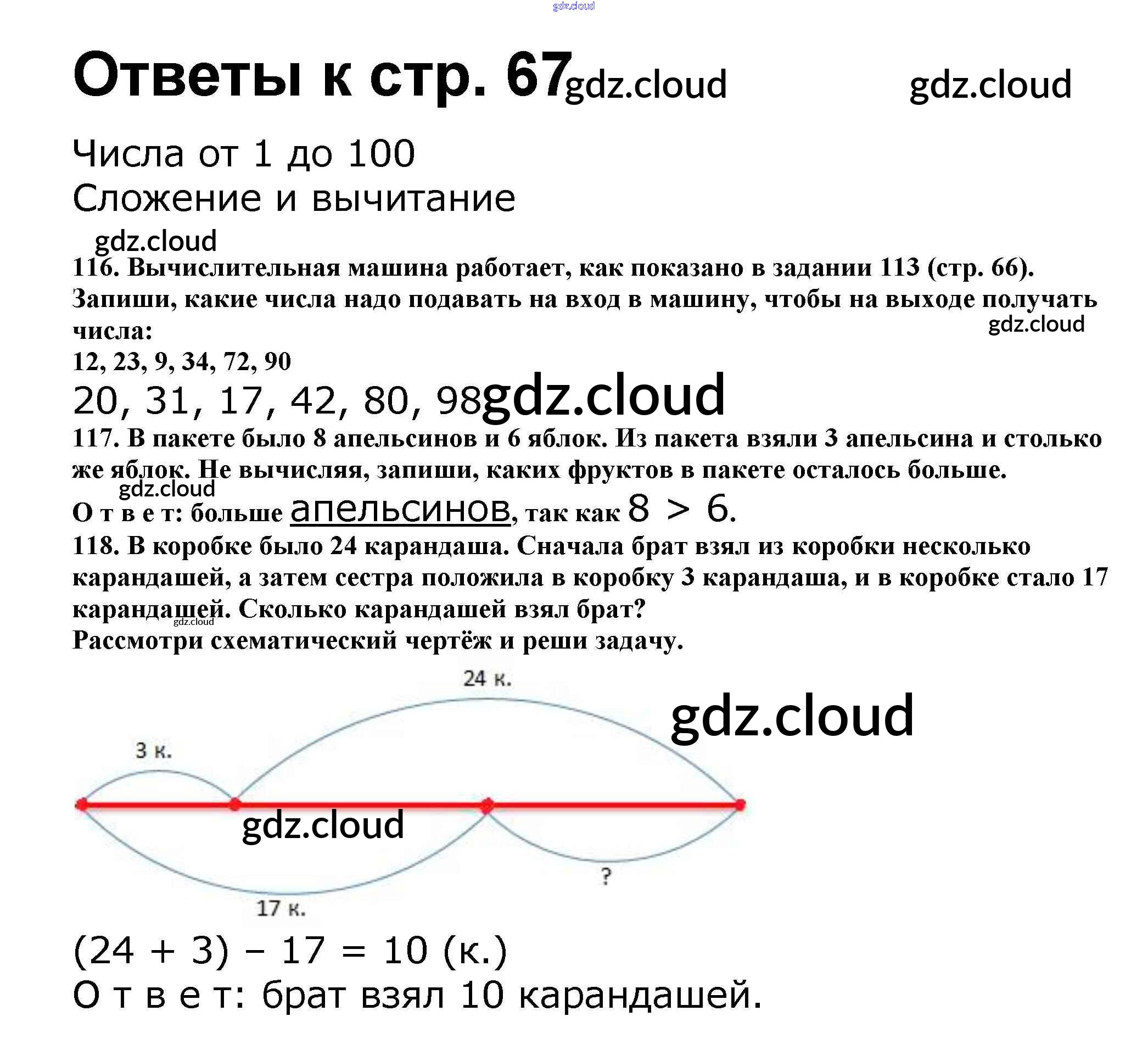Ответ на задание стр.67 Рабочая тетрадь Математика за 2 (второй) класс Волкова, Моро Школа России 2016 Часть 1, 2