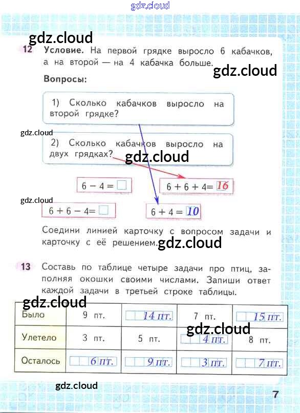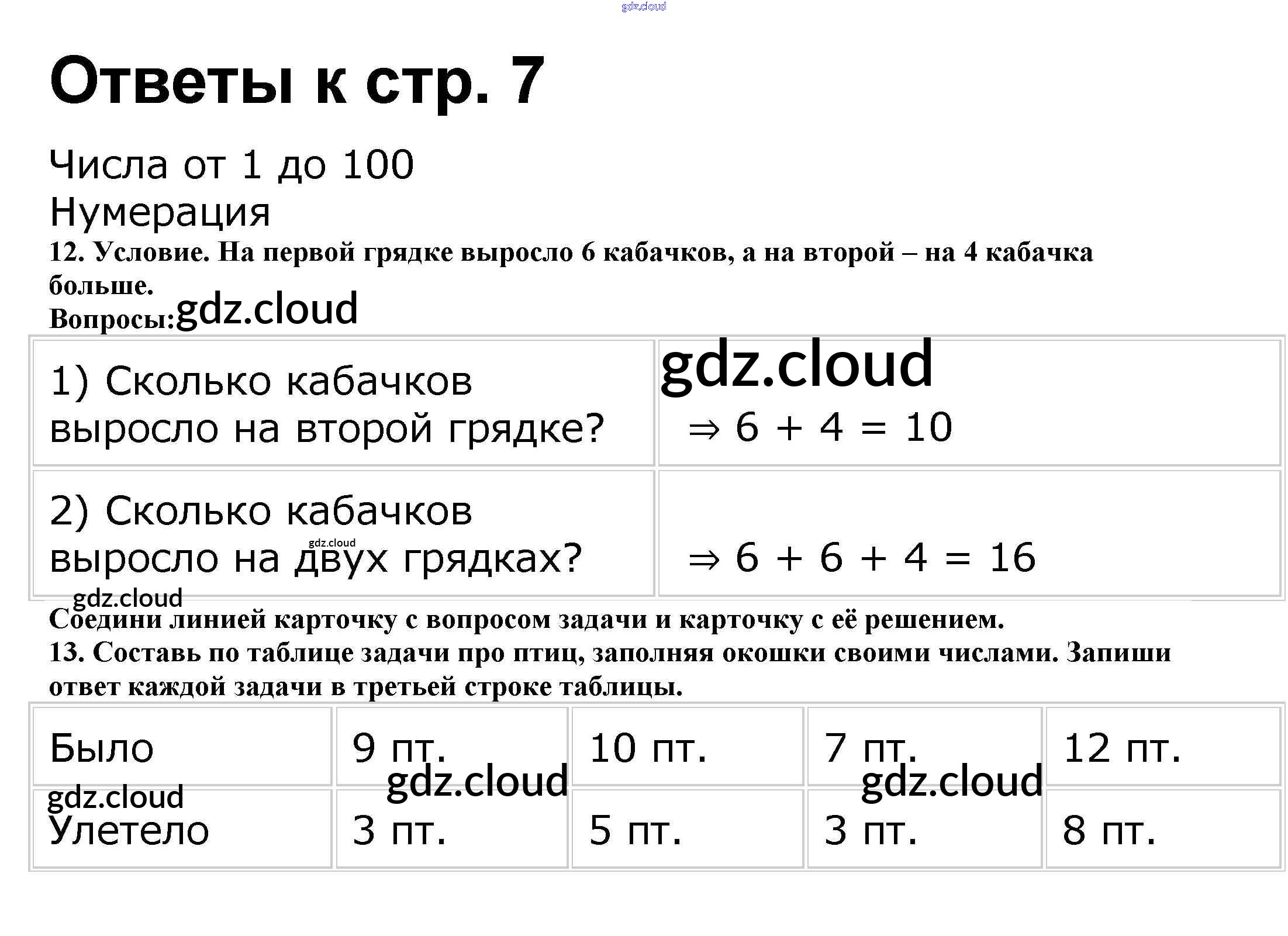 Ответ на задание стр.7 Рабочая тетрадь Математика за 2 (второй) класс Волкова, Моро Школа России 2016 Часть 1, 2