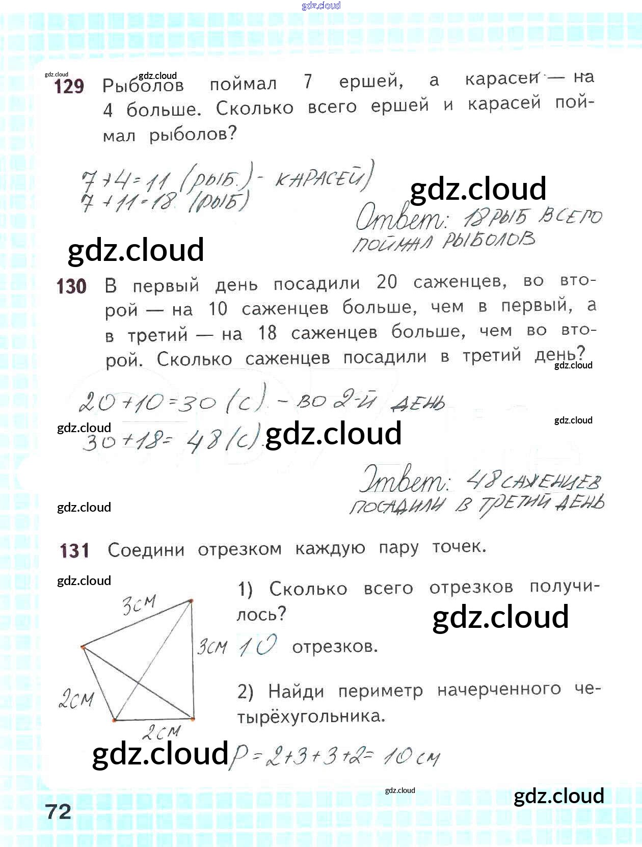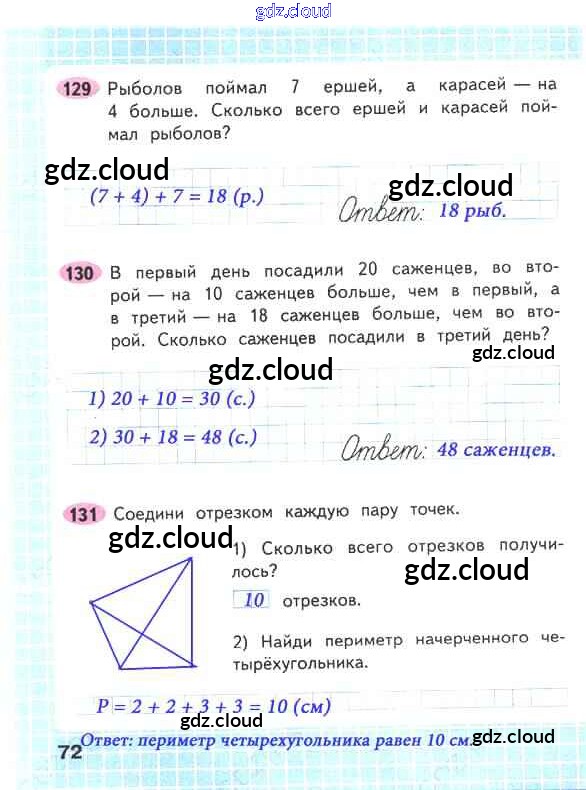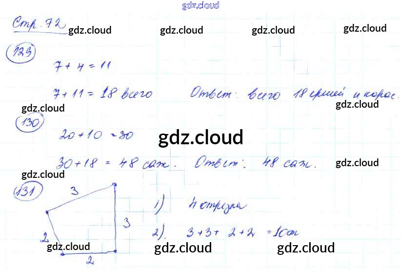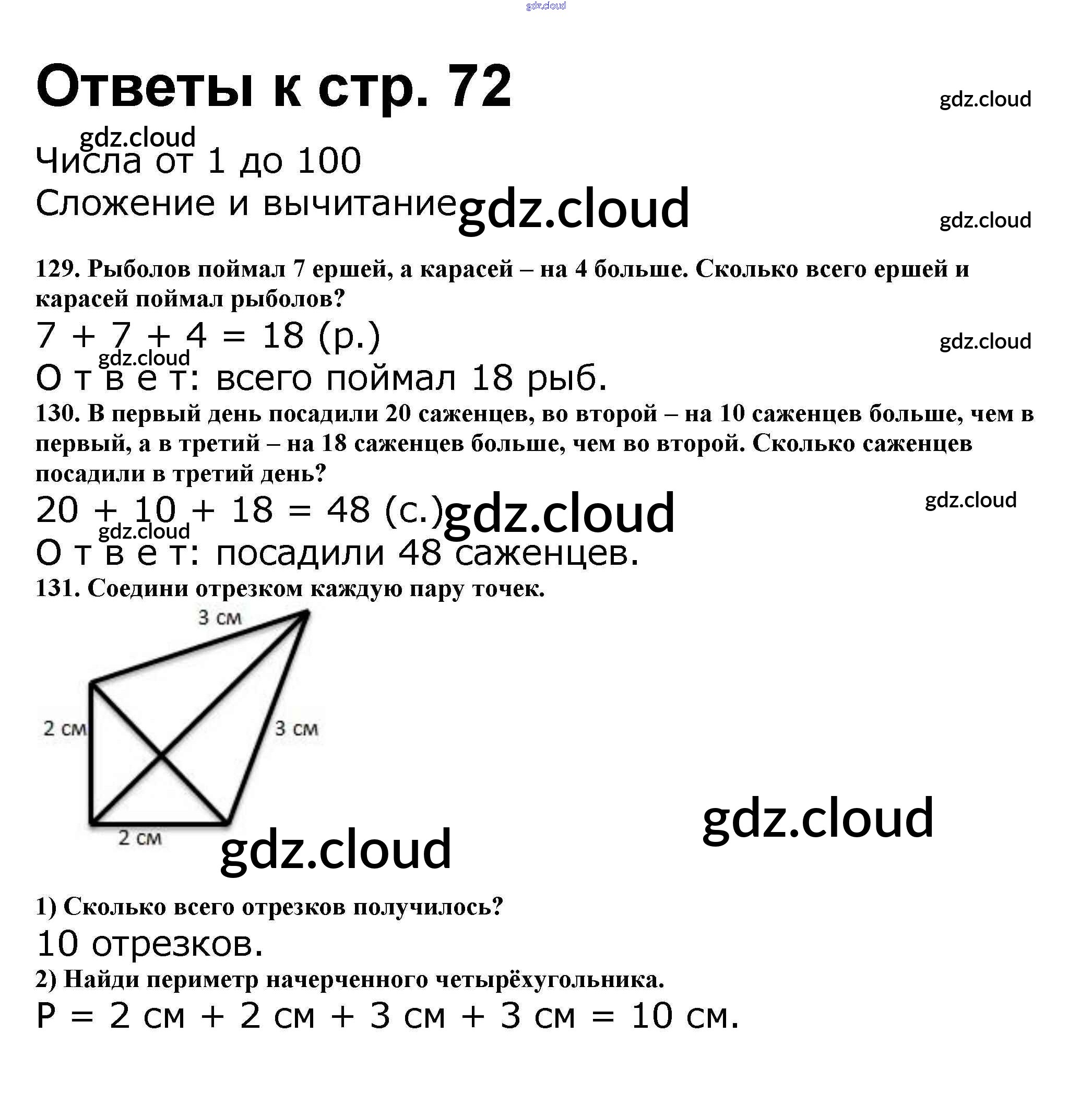Ответ на задание стр.72 Рабочая тетрадь Математика за 2 (второй) класс Волкова, Моро Школа России 2016 Часть 1, 2