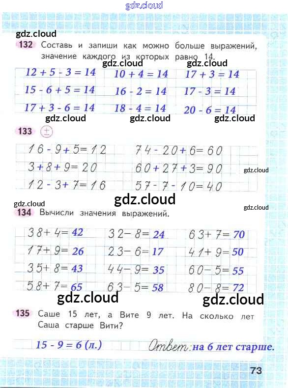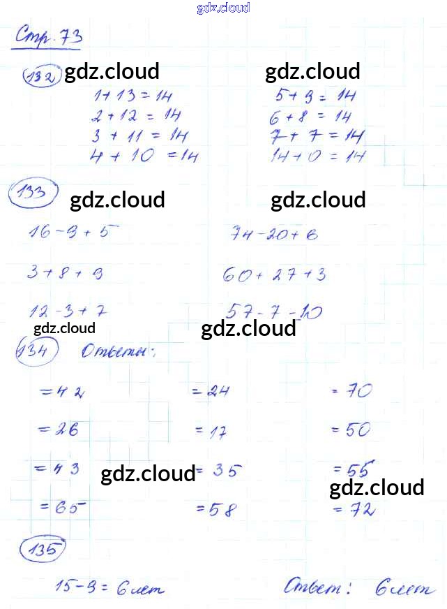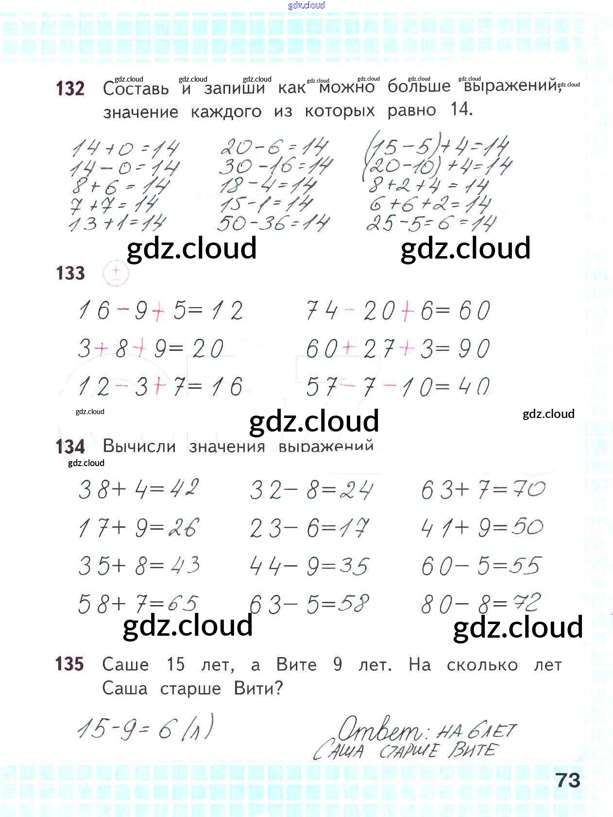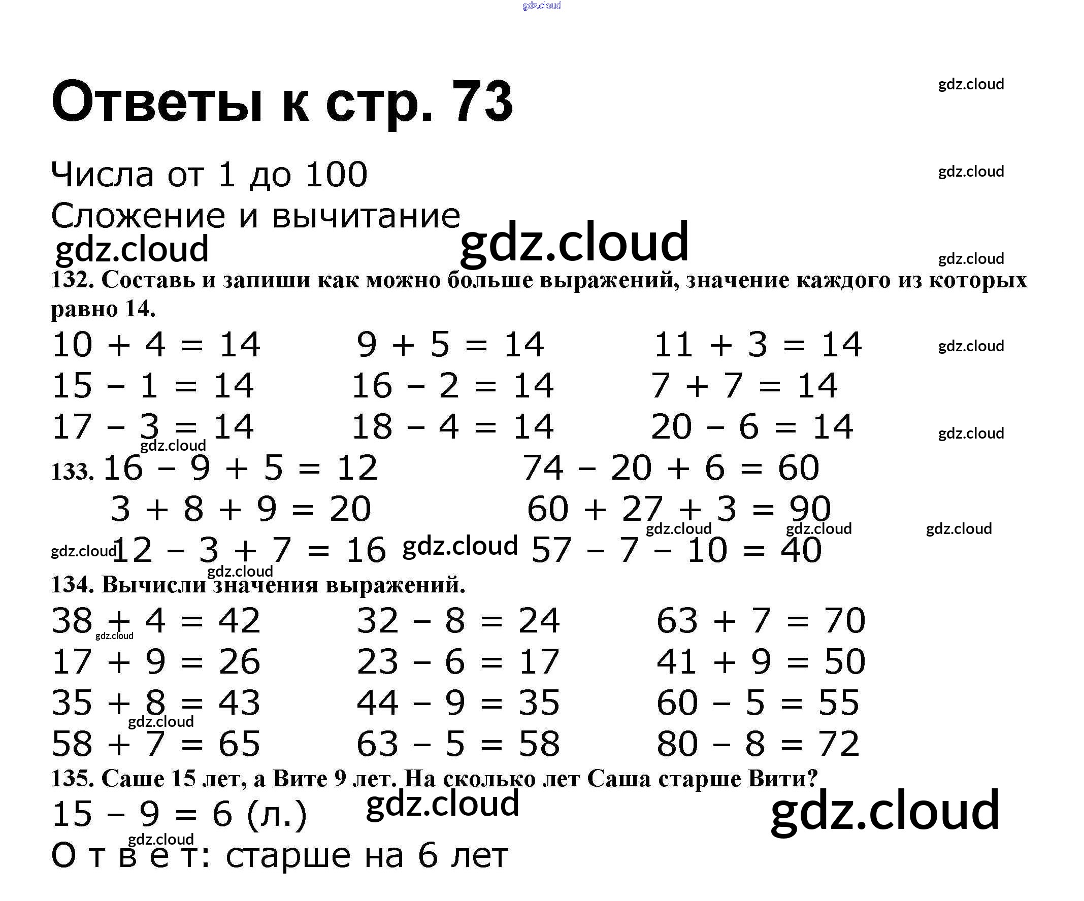 Ответ на задание стр.73 Рабочая тетрадь Математика за 2 (второй) класс Волкова, Моро Школа России 2016 Часть 1, 2