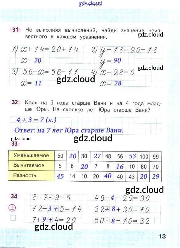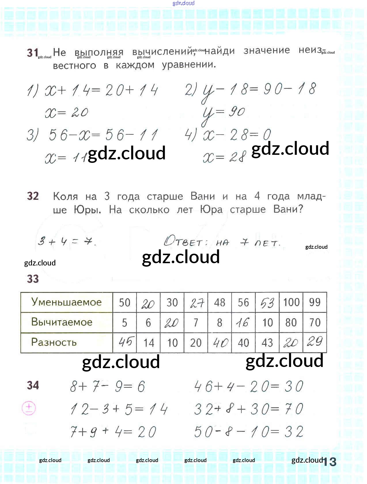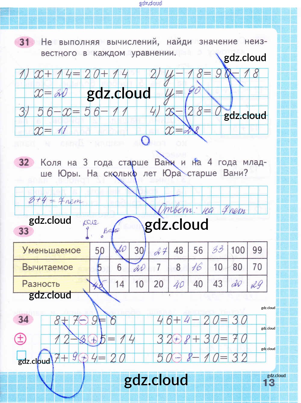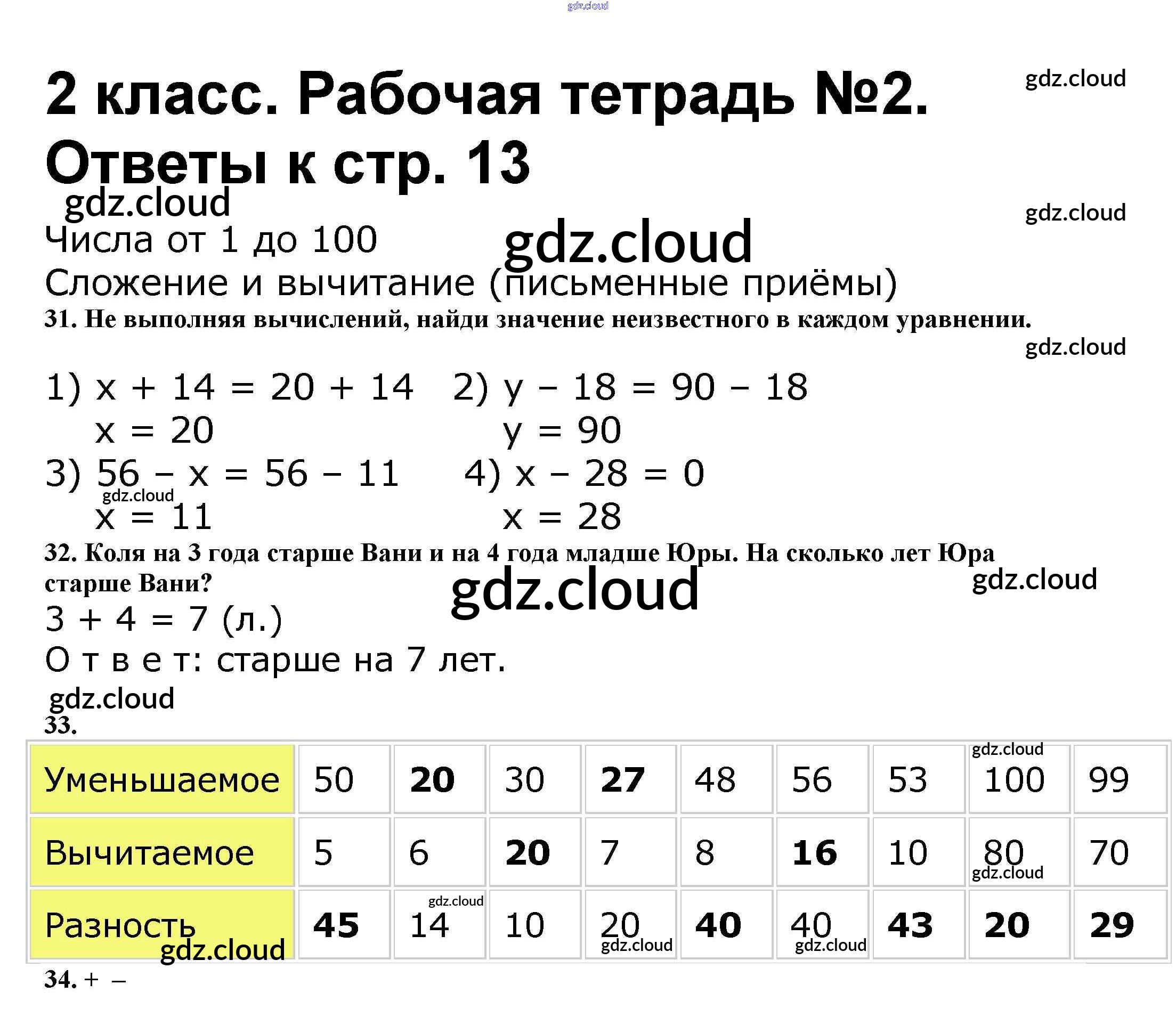Ответ на задание стр.13 Рабочая тетрадь Математика за 2 (второй) класс Волкова, Моро Школа России 2016 Часть 1, 2