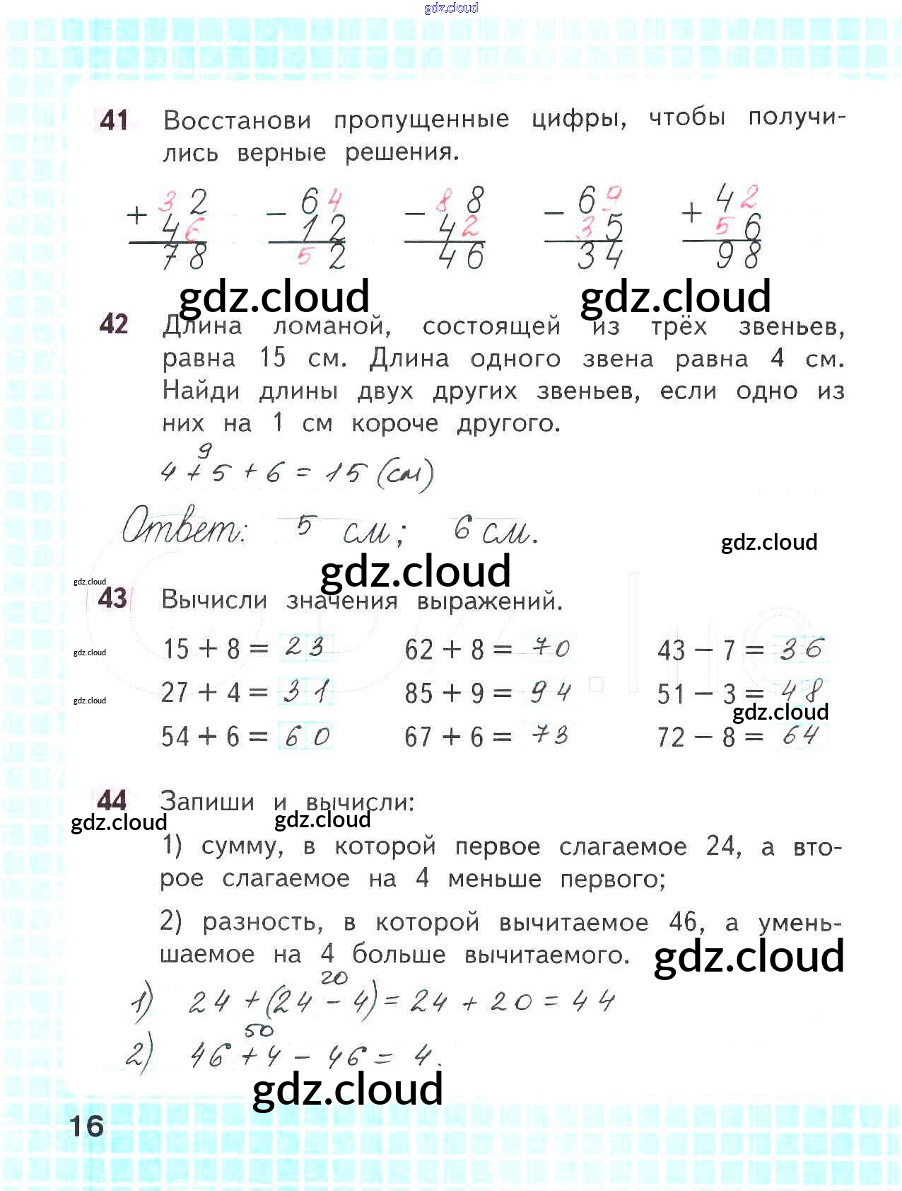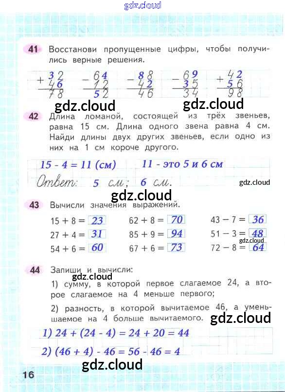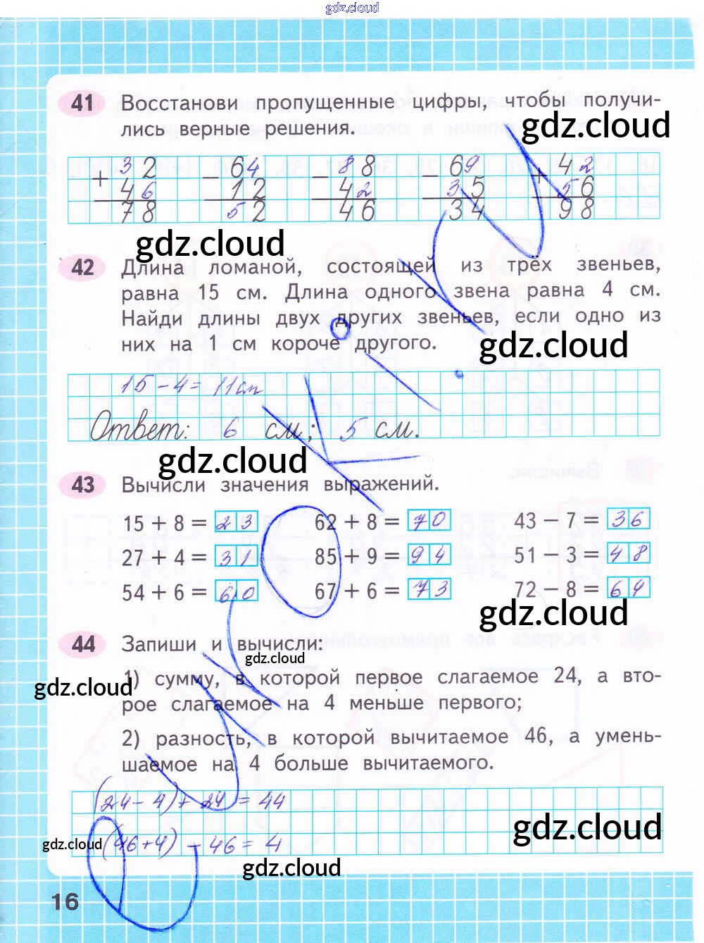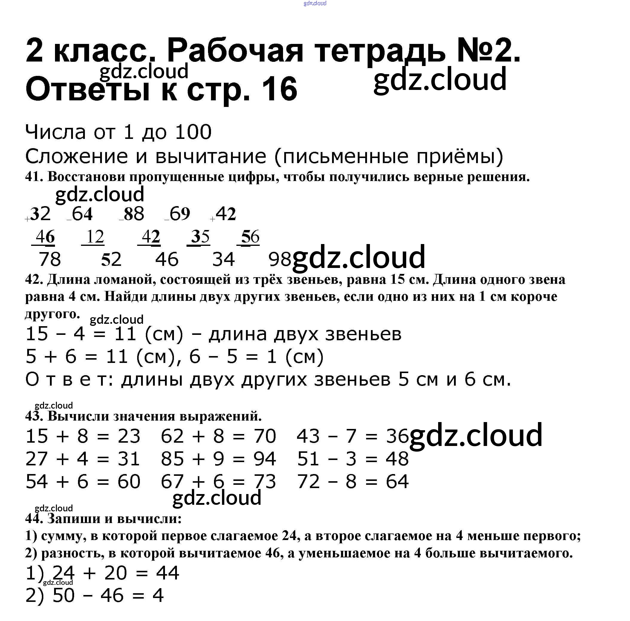 Ответ на задание стр.16 Рабочая тетрадь Математика за 2 (второй) класс Волкова, Моро Школа России 2016 Часть 1, 2