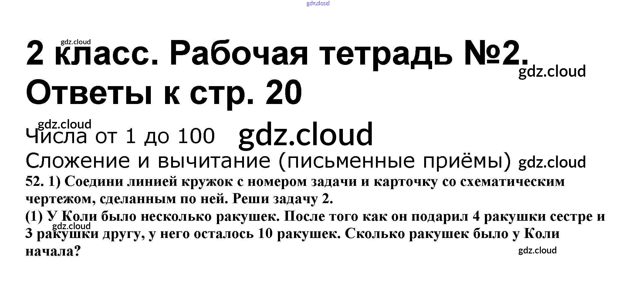 Ответ на задание стр.20 Рабочая тетрадь Математика за 2 (второй) класс Волкова, Моро Школа России 2016 Часть 1, 2