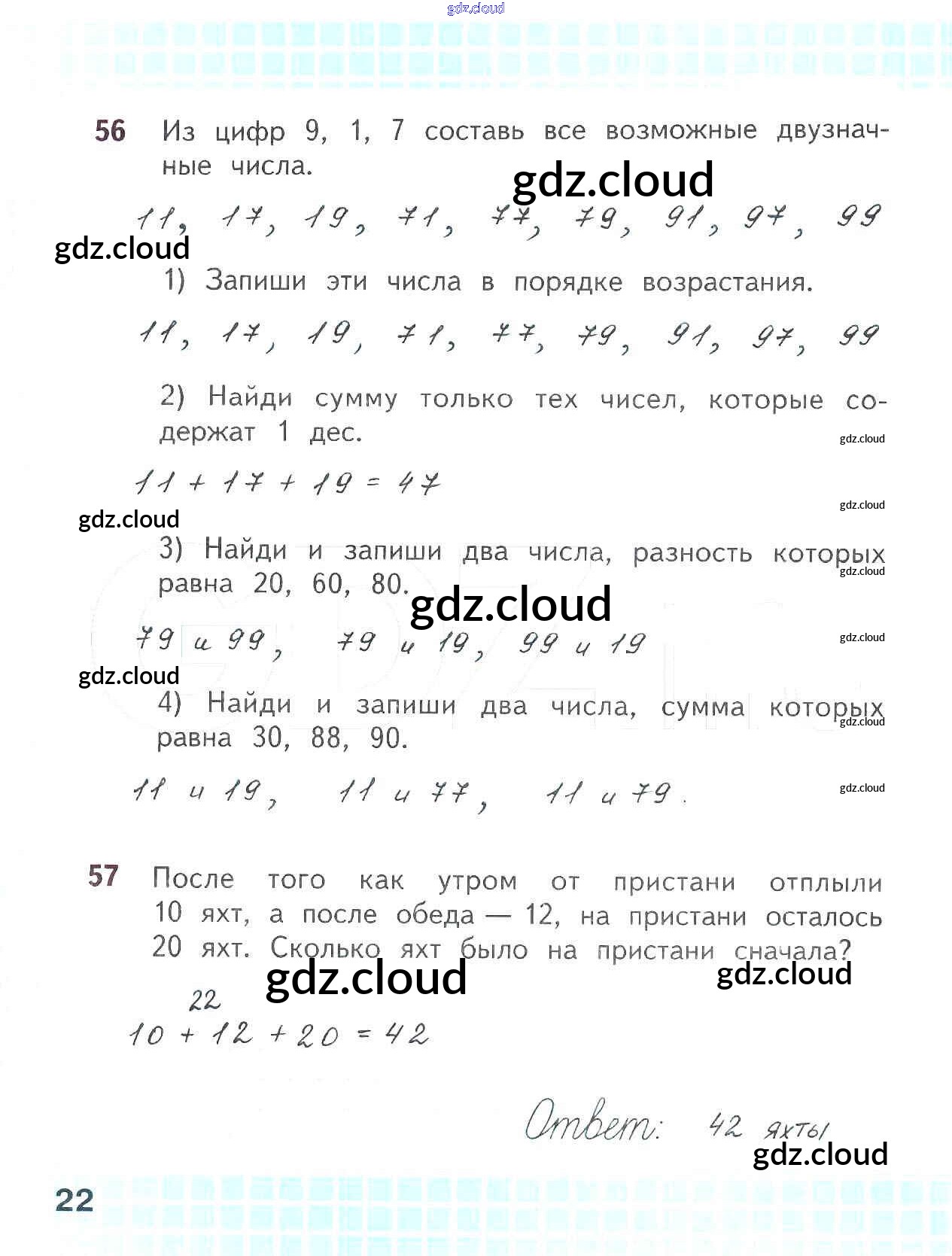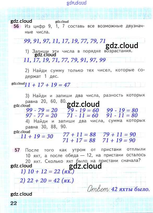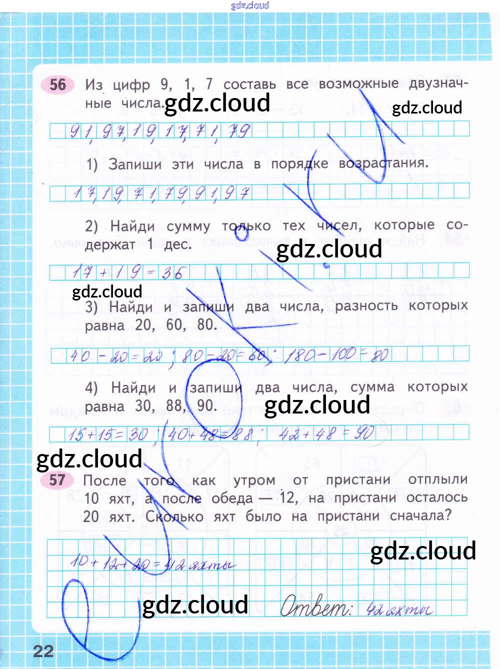 Ответ на задание стр.22 Рабочая тетрадь Математика за 2 (второй) класс Волкова, Моро Школа России 2016 Часть 1, 2